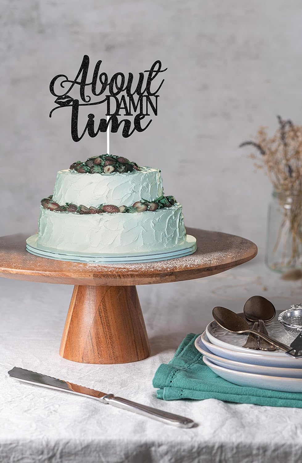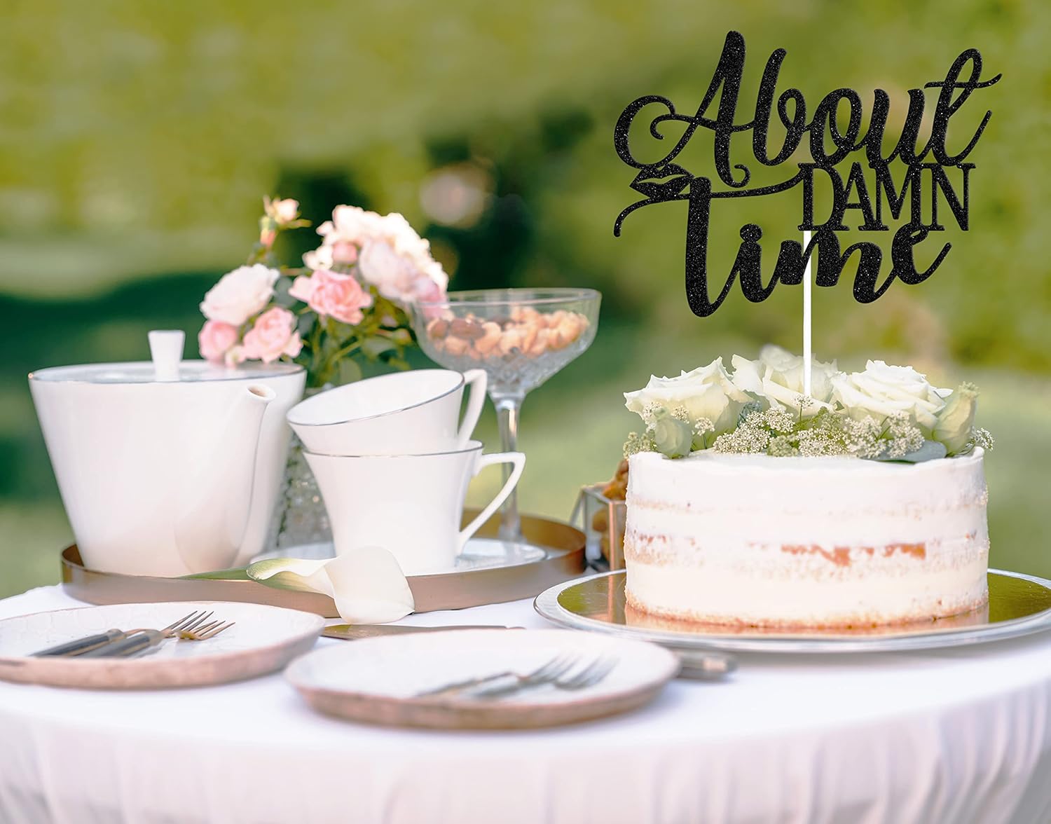 About Damn Time Cake Topper, Engagement Wedding Party Decorations, Congrats Wedding/Anniversary Party Decor, Love Laughter & Happily Ever After Party Supplies Black Glitter