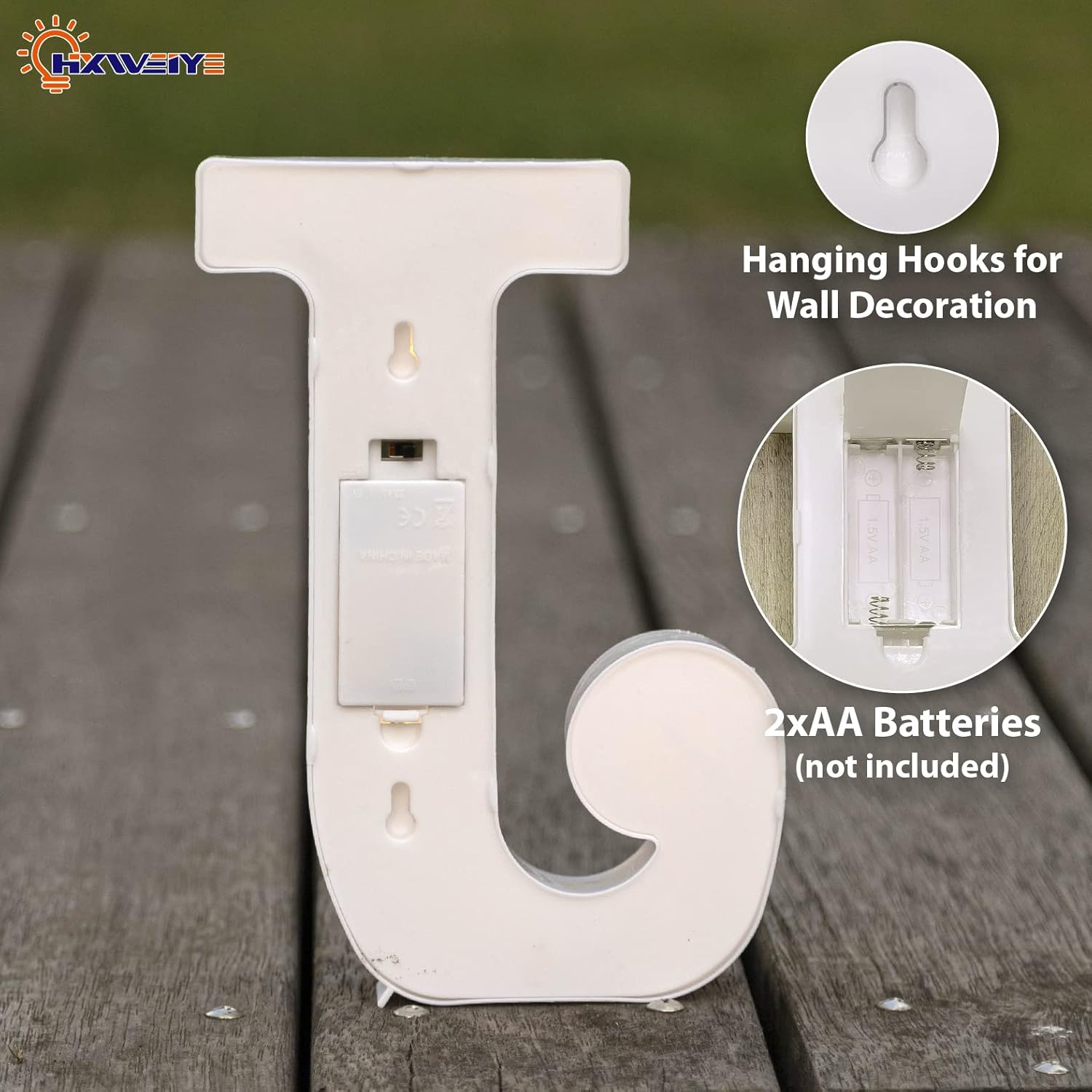 HXWEIYE LED Marquee Letters Lights Sign - J, 26 Alphabet & Number 0-9 Warm White Led Letters for Bar Party Birthday Home Wedding Decor