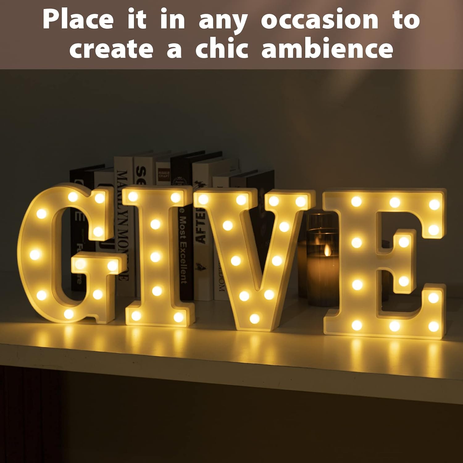 - 【Widely Used】: These led letters can light up your favorite words in various festival occasions, themed parties event, Christmas and interior and exterior decoration. Surprise your friend or loved one with their initial or name in lights up sign! An ideal gift for Christmas, Birthdays, Baby Showers, teens, Weddings, Party, Anniversaries, bars, cafes, pets and every important day decoration.