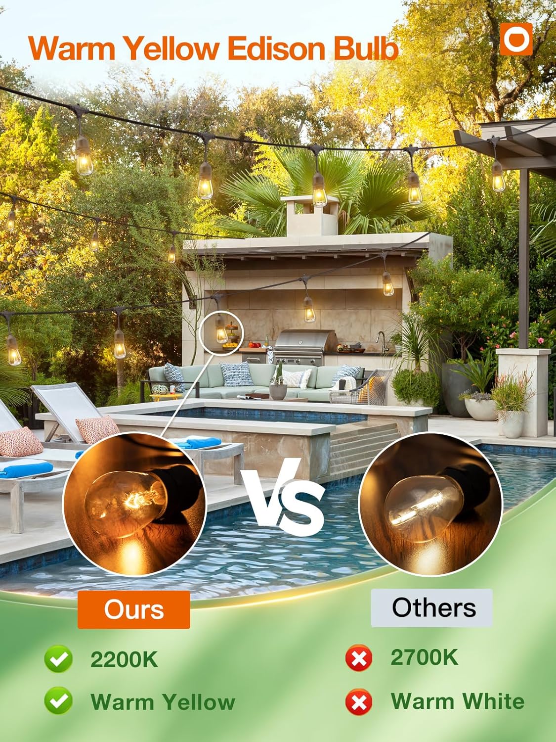 - [Dimmer Compatible to Set The Right Mood] For greater mood lighting flexibility and a more soft glow, a dimmer switch(not included) to create the ideal atmosphere for a birthday party, family reunion, or wedding reception. It adds flair to bistro deck porch patio garden backyard terrace pergola cafƩ restaurant malls for wedding BBQ party banquets, also suitable for tree-lighting