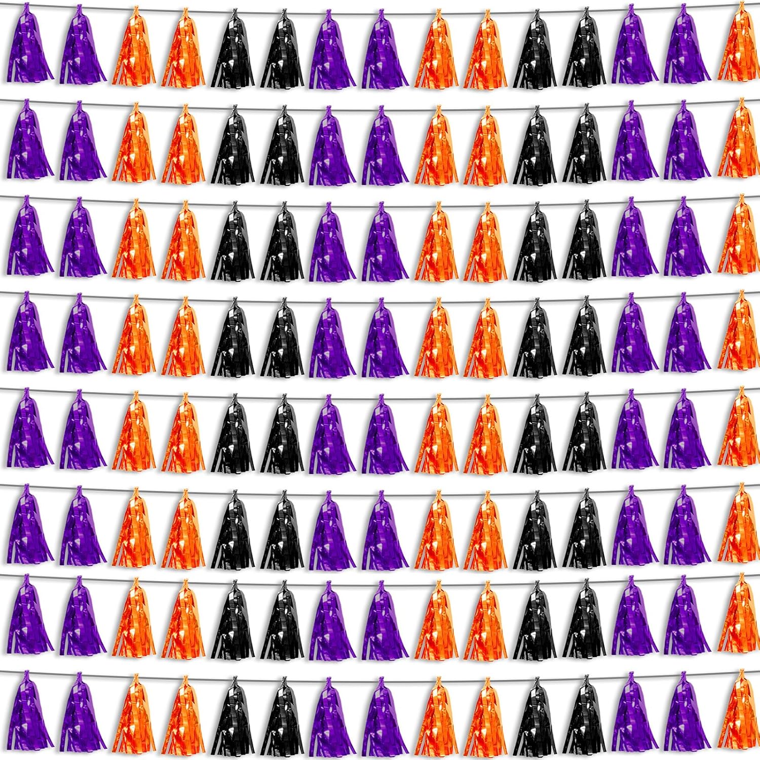 8P Purple Black 0range Foil Fringe Metallic Tassel Streamers Banner Tassel Garland for Parade Floats, Bachelorette, Wedding, Birthday, Halloween, Christmas, Bridal/Baby Shower Party Decorations