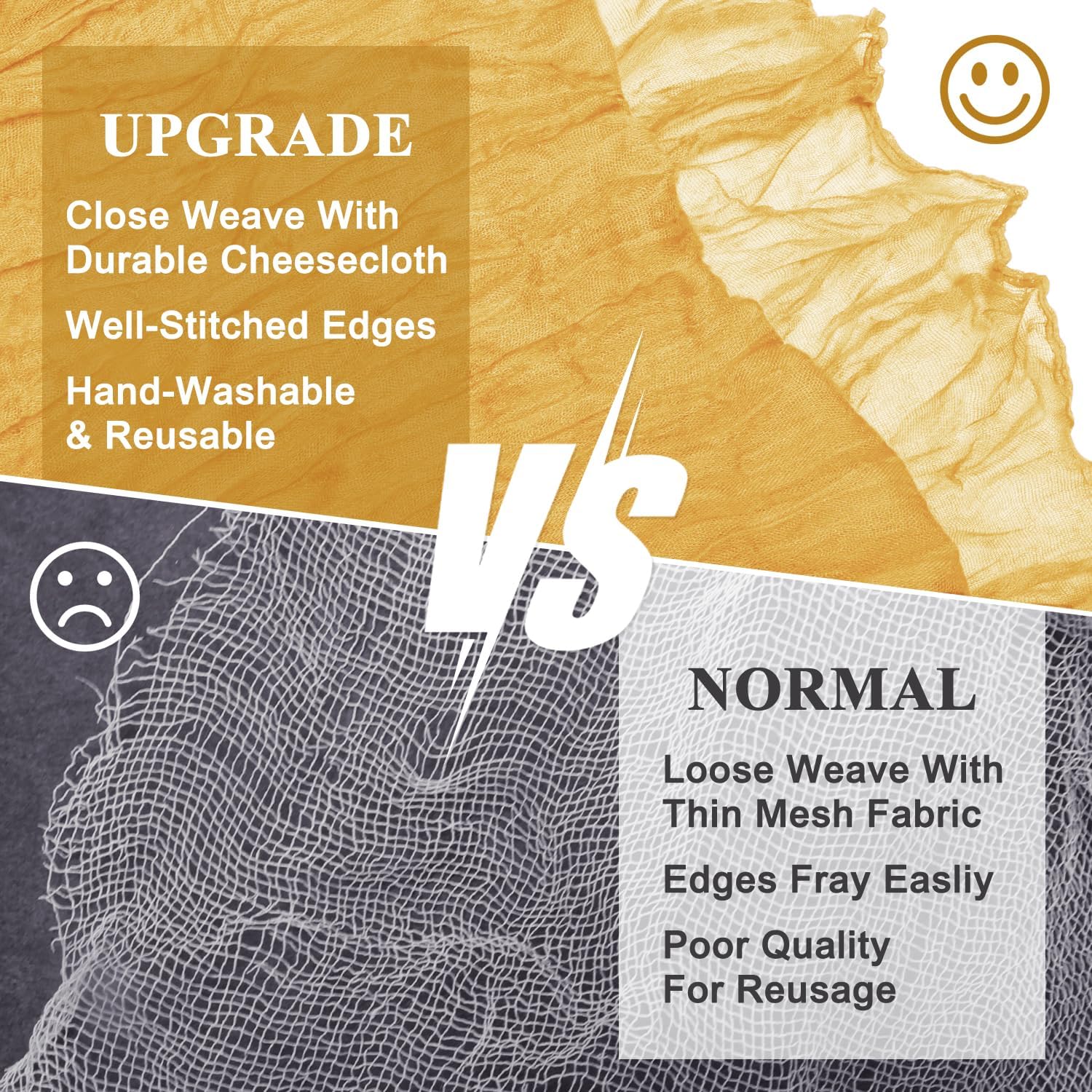 - 【Cheesecloth Table Runner】 Size: 35" W x 120" L. You will get 2 pieces 10FT length cheesecloth table runner. The sheer rustic table runner is long enough to span a large table and drape gracefully across the table. It will gently sway in the wind, adding a romantic atmosphere to your occasion. These eye-catching gauze table runners are ideal for arranging an elegant, stylish tablescape.