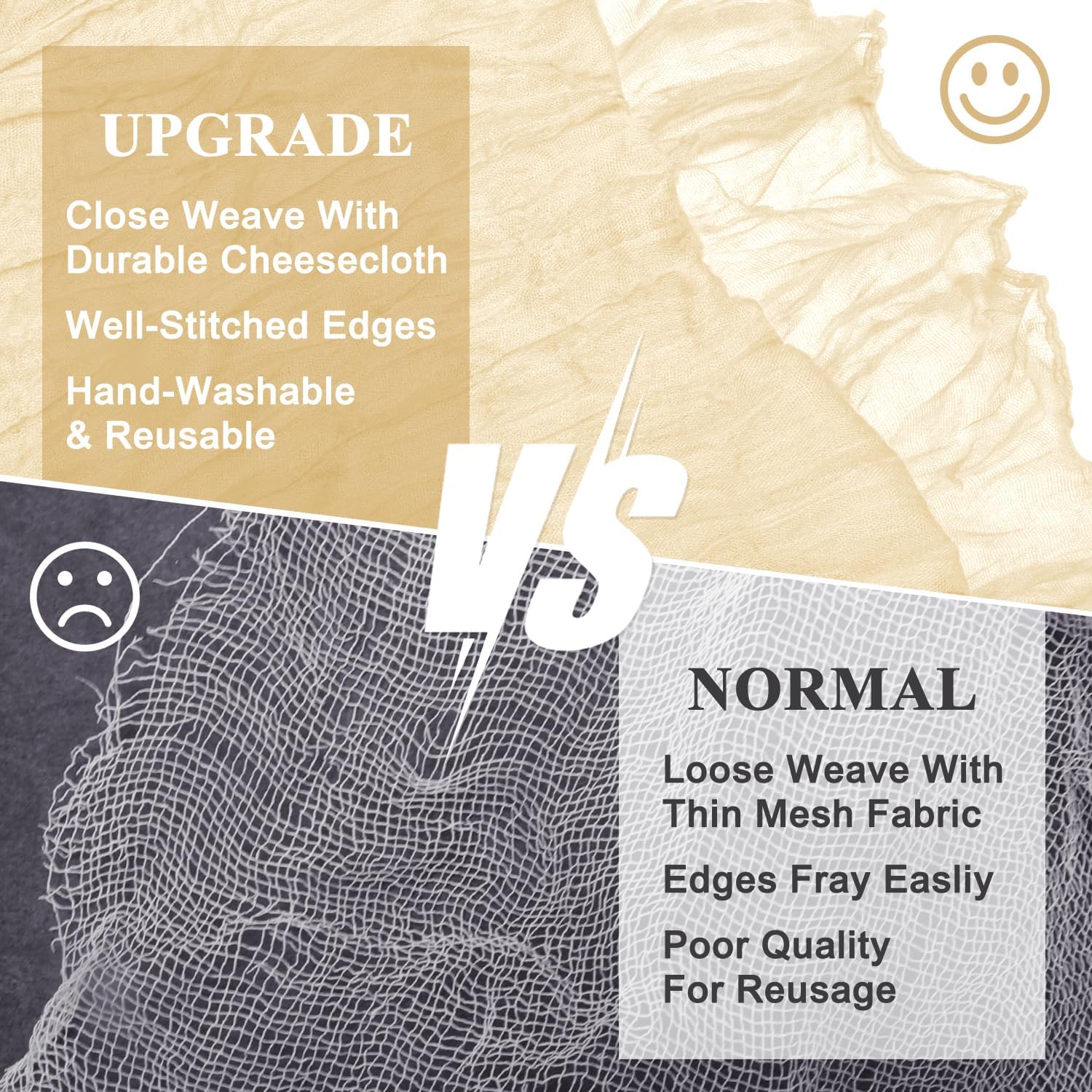 - 【Cheesecloth Table Runner】 Size: 35" W x 120" L. You will get 3 pieces 10FT length cheesecloth table runner. The sheer rustic table runner is long enough to span a large table and drape gracefully across the table. It will gently sway in the wind, adding a romantic atmosphere to your occasion. These eye-catching gauze table runners are ideal for arranging an elegant, stylish tablescape.