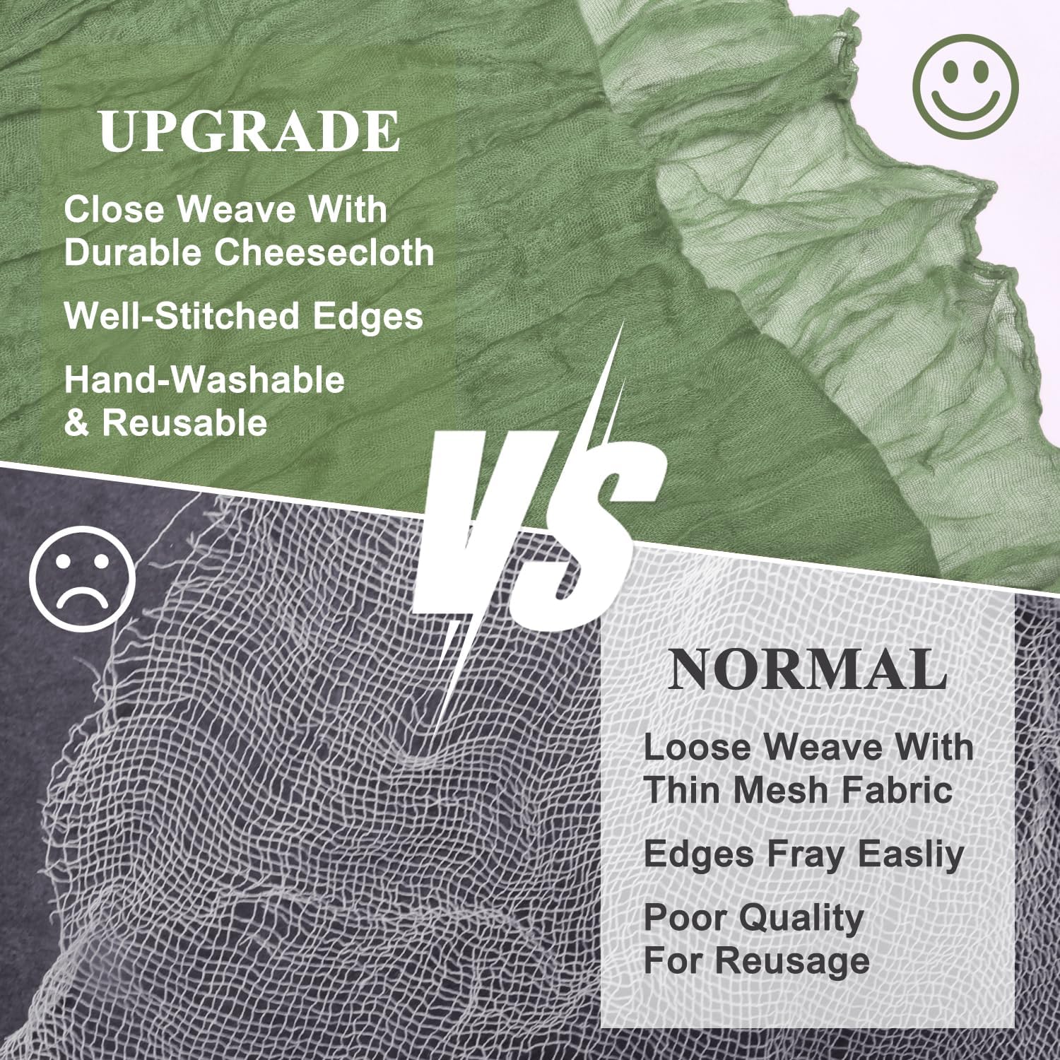 - 【Cheesecloth Table Runner】 Size: 35" W x 120" L. You will get 2 pieces 10FT length cheesecloth table runner. The sheer rustic table runner is long enough to span a large table and drape gracefully across the table. It will gently sway in the wind, adding a romantic atmosphere to your occasion. These eye-catching gauze table runners are ideal for arranging an elegant, stylish tablescape.