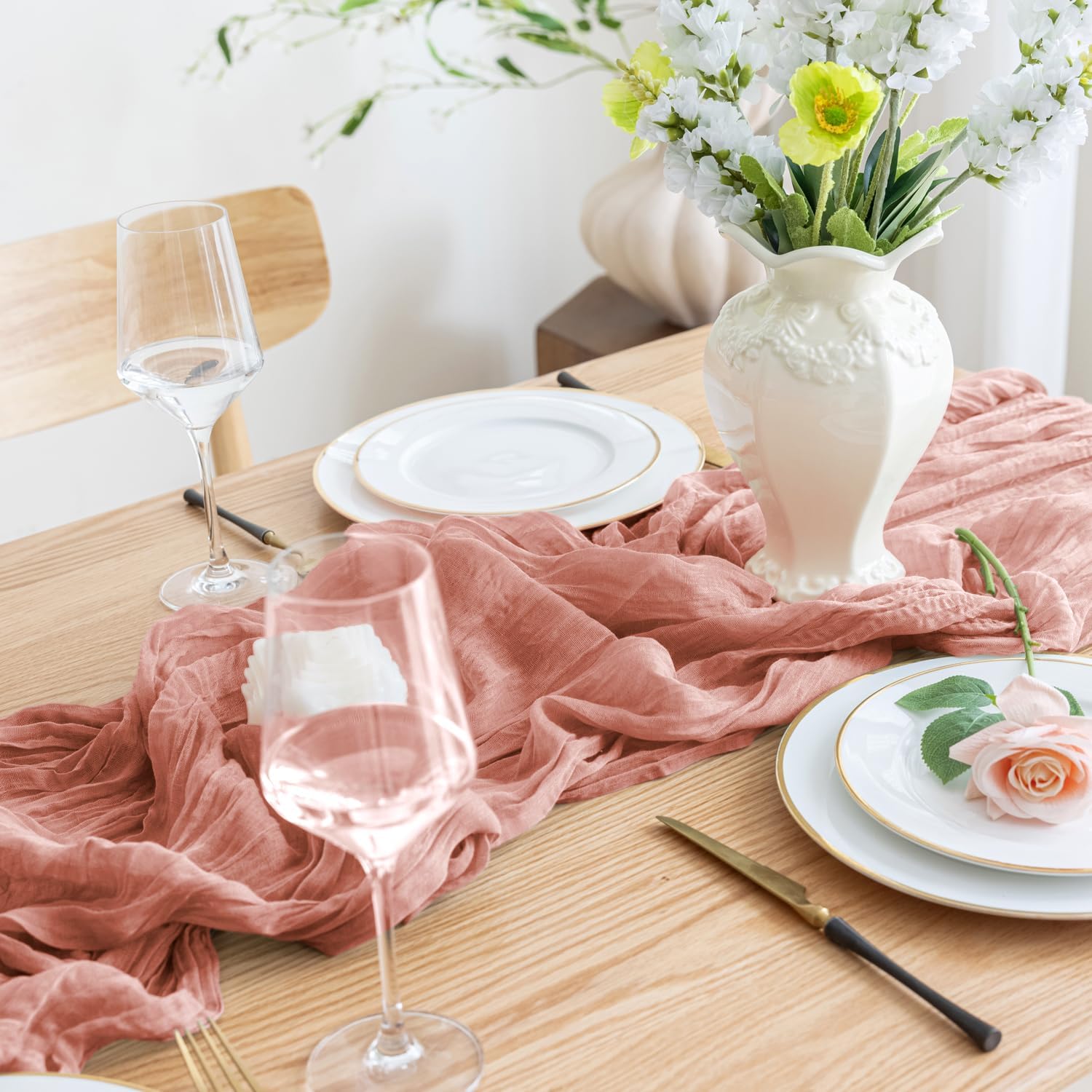 - 【Soft and Reusable】 The long table runner is made of good wrinkled design gauze fabric. The vintage wedding table runner is lightweight, soft to touch, natural drape, no pilling, durable and not easy to fade. It can be fully used as a decoration for your dining table, chair cover sashes, or an ornament for your party decor, etc.