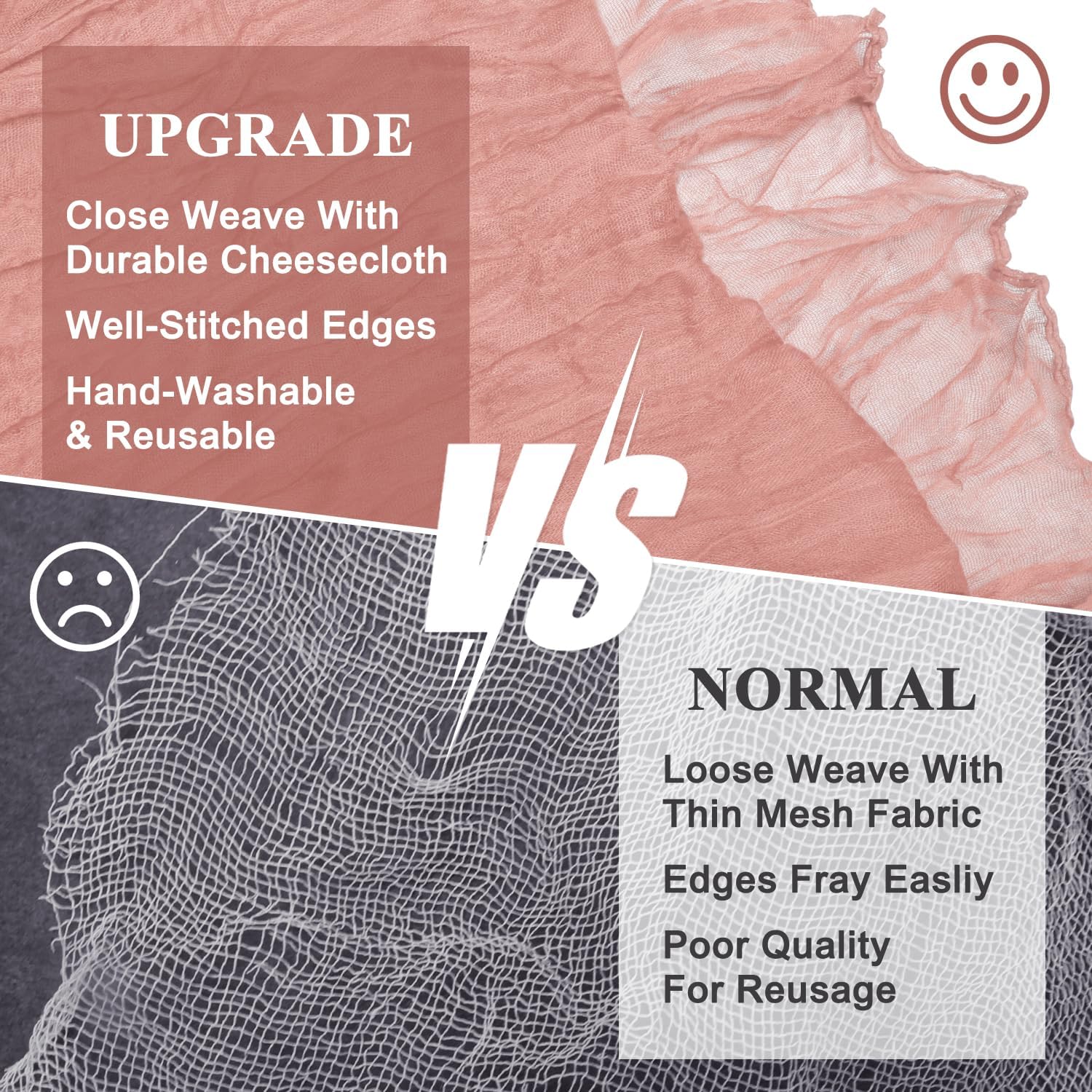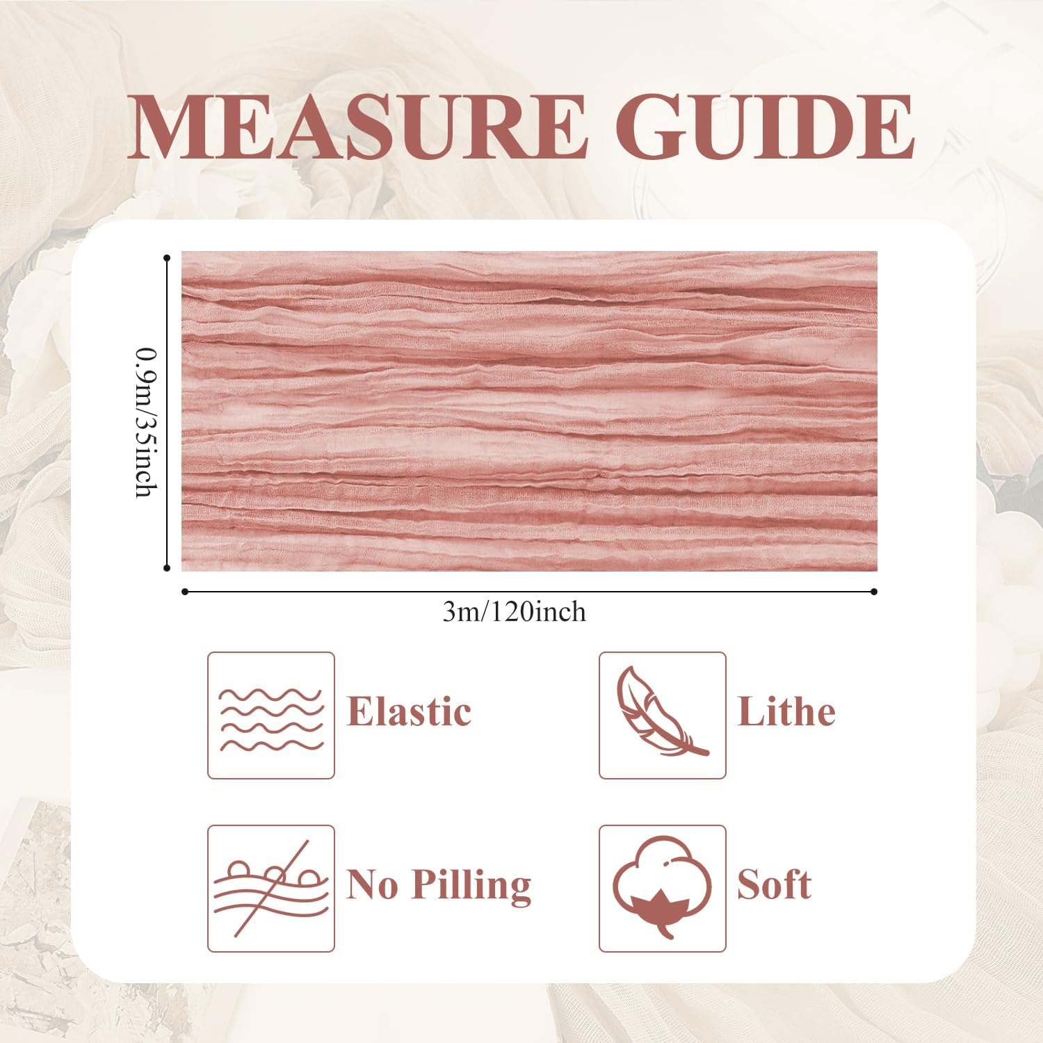 - 【Cheesecloth Table Runner】 Size: 35" W x 120" L. You will get 3 pieces 10FT length cheesecloth table runner. The sheer rustic table runner is long enough to span a large table and drape gracefully across the table. It will gently sway in the wind, adding a romantic atmosphere to your occasion. These eye-catching gauze table runners are ideal for arranging an elegant, stylish tablescape.
