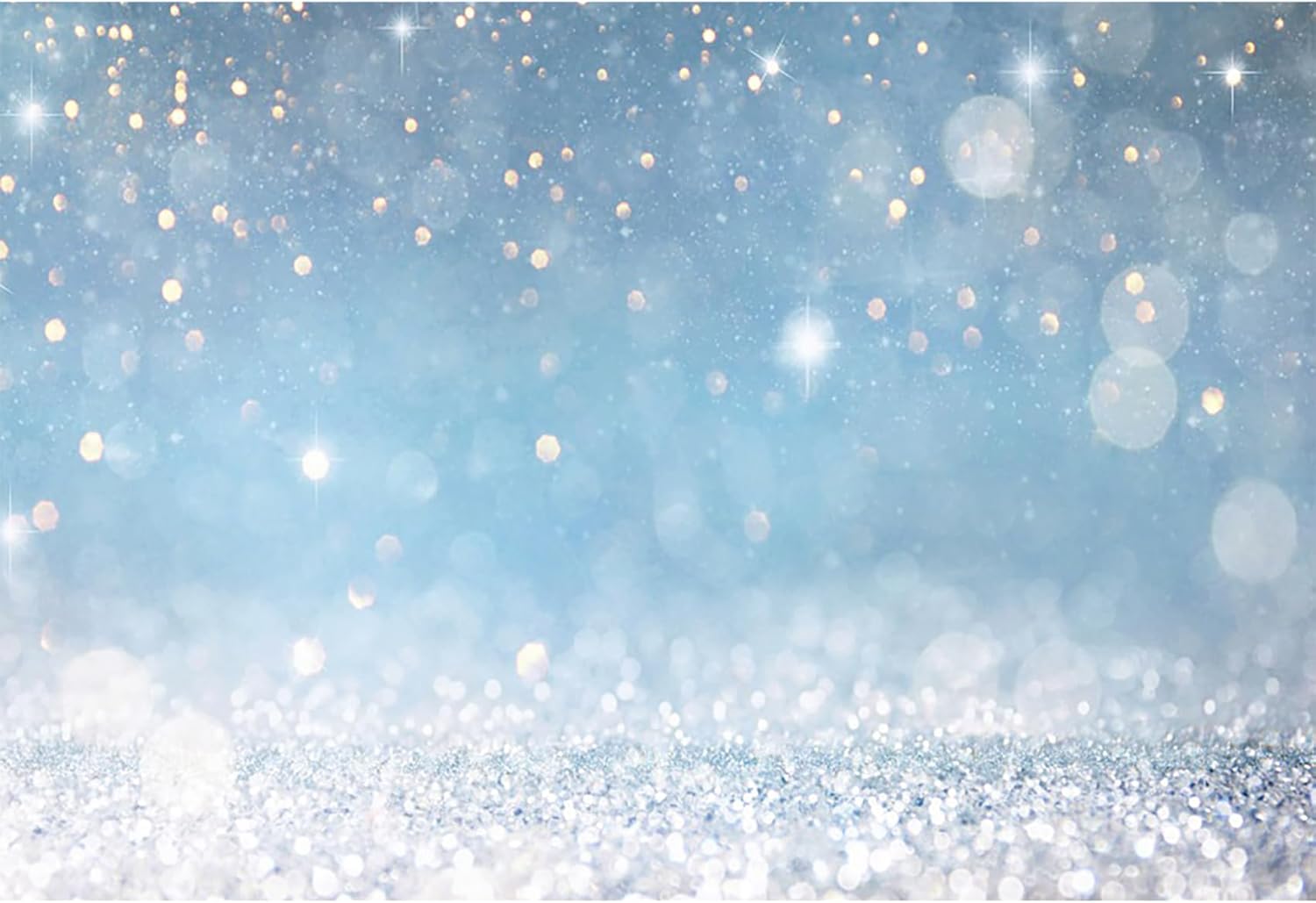 8x6ft Blue Bokeh (Not Glitter) Backdrops Birthday Party Abstract Golden Sparkling Spots Photography Background Baby Shower Wedding Prom Graduation Party Bokeh Decor Banner Photoshoot Props