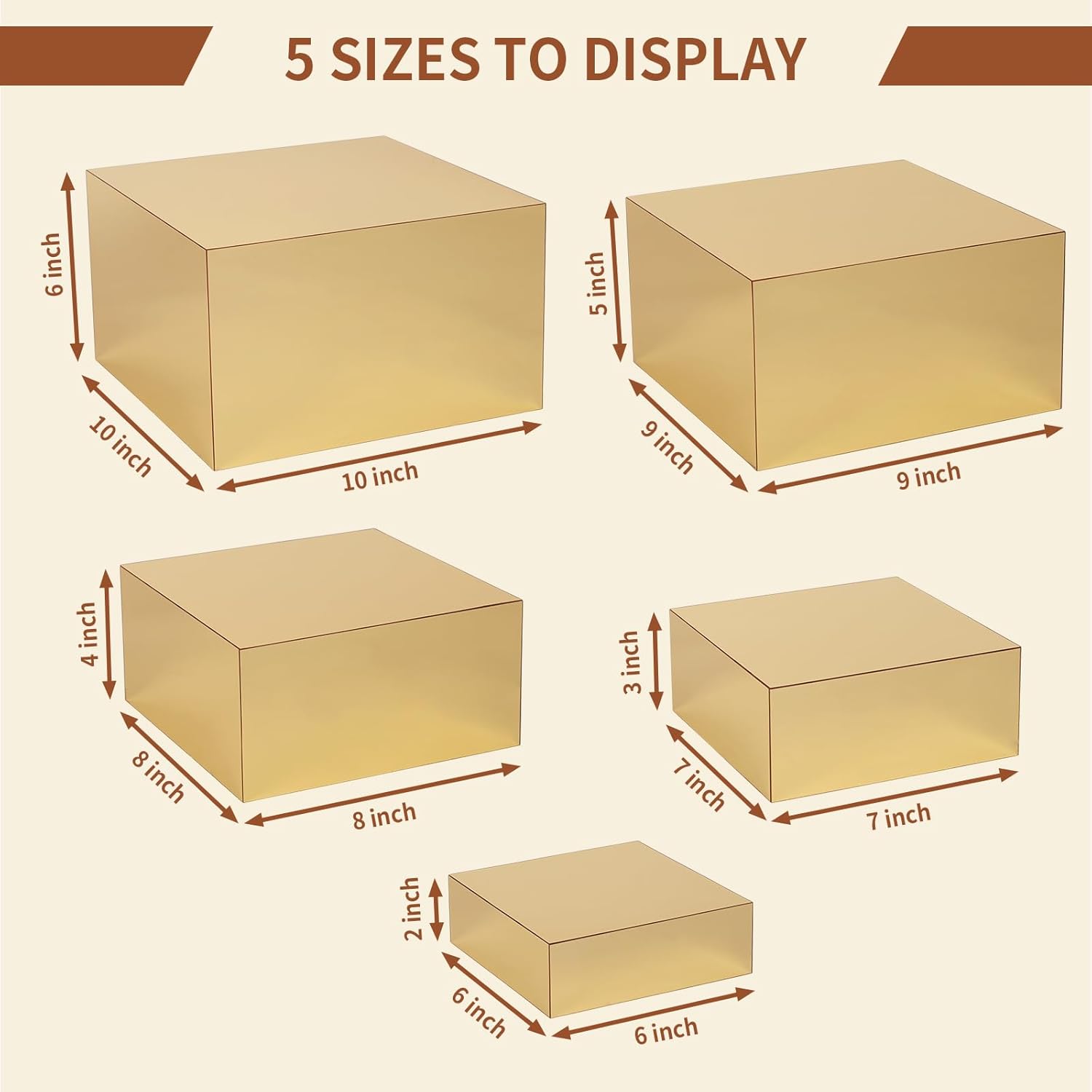 Acrylic Risers for Display 5 Pcs, Food Risers for Party Gold Cube Boxes Display Stands for Jewelry Bag Cosmetics Catering Dessert Collectibles