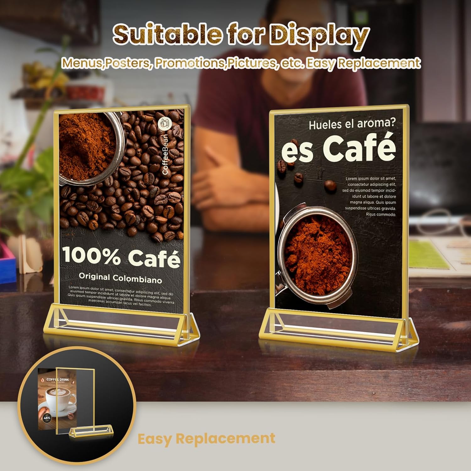- 【Premium Acrylic Material】Our acrylic 4 x 6 gold sign holders are made of high-quality acrylic plastic glass, which can effectively resist falling. The clear acrylic sign holder will not dim or turn yellow under continuous exposure to the sunlight which offers a superb display effect.