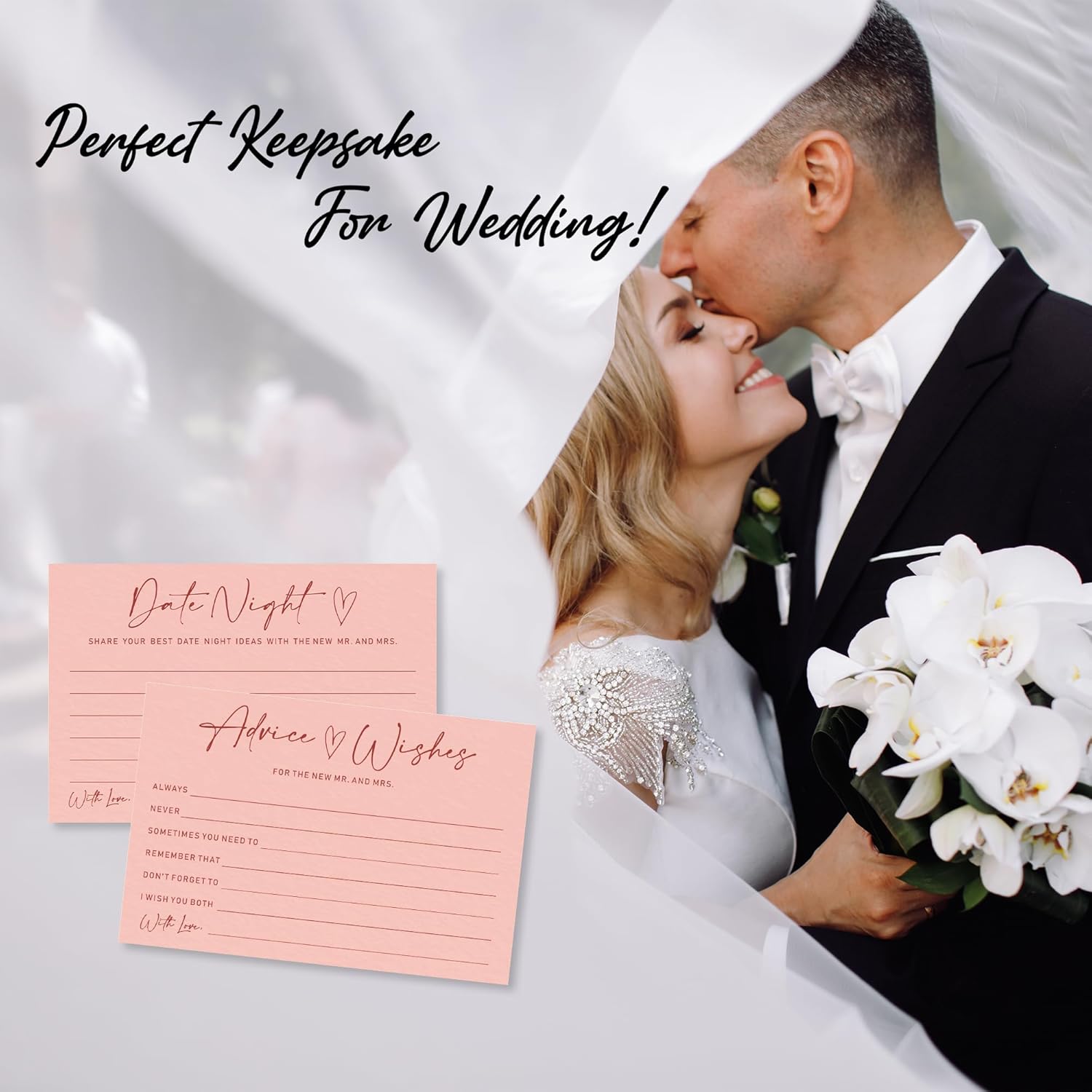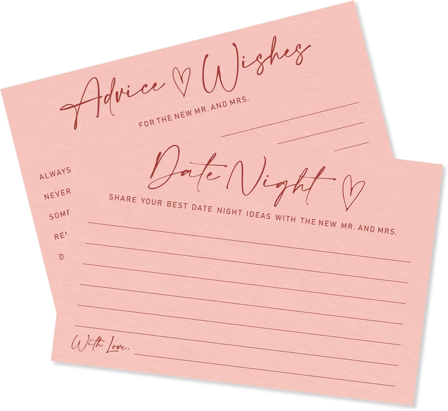 Advice & Wishes Card Set - Minimalism Pink - 15 Advice & Wishes Cards & 15 Date Night Cards Cards For New Couple, Newlyweds, Engagement, Wedding Party Favor & Supplies - B04