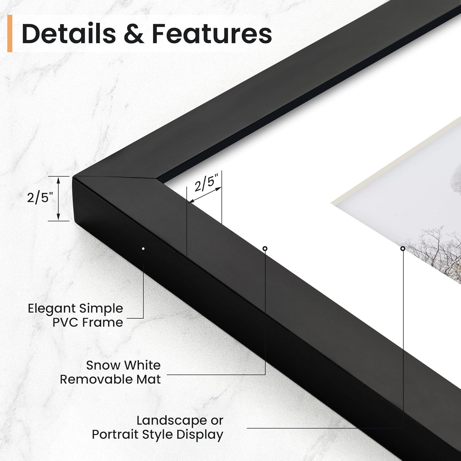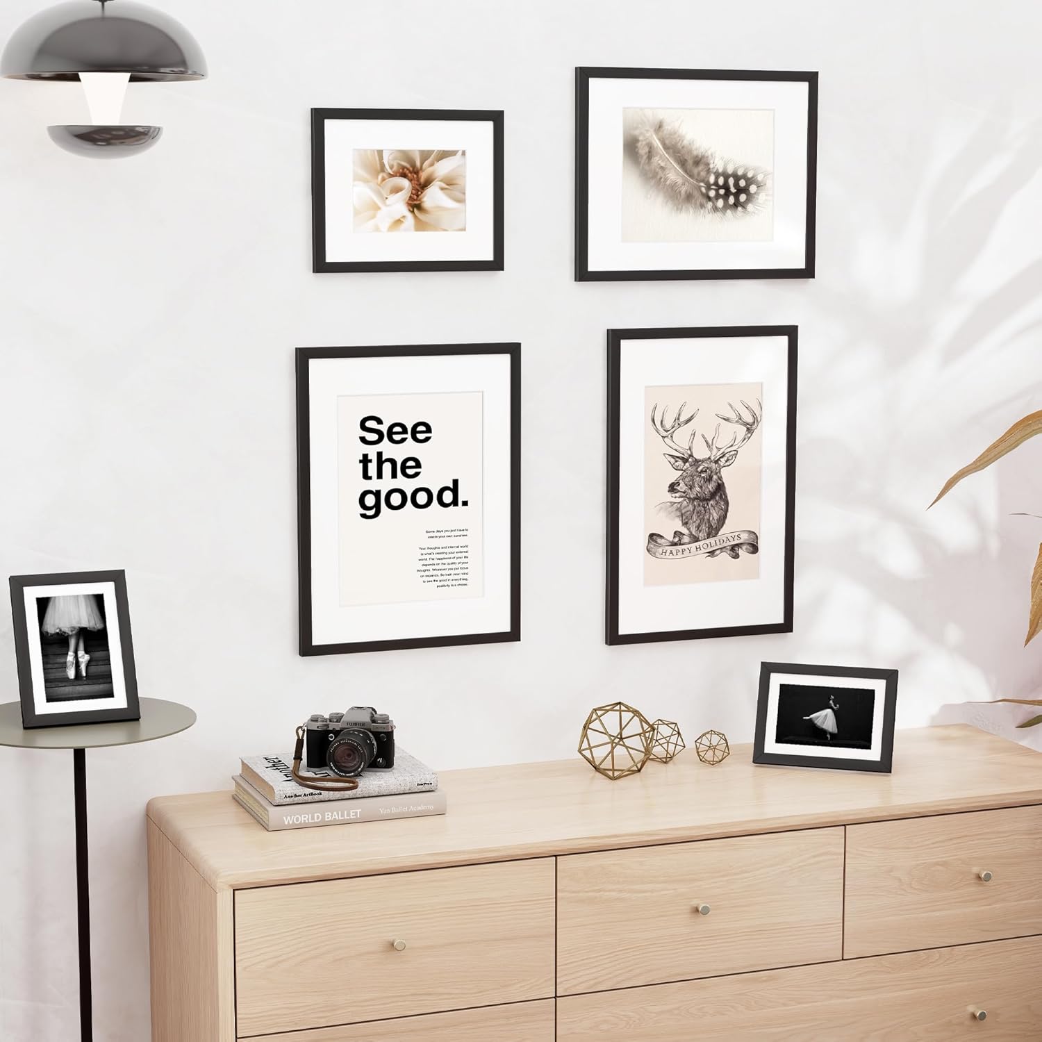 8x10 inch Picture Frame, 8x10 Photo Frames with 5x7 Removable Mat - High Definition Plexiglass - Vertical and Horizontal Display - Wall Hanging Frame - Black, 5 Pack