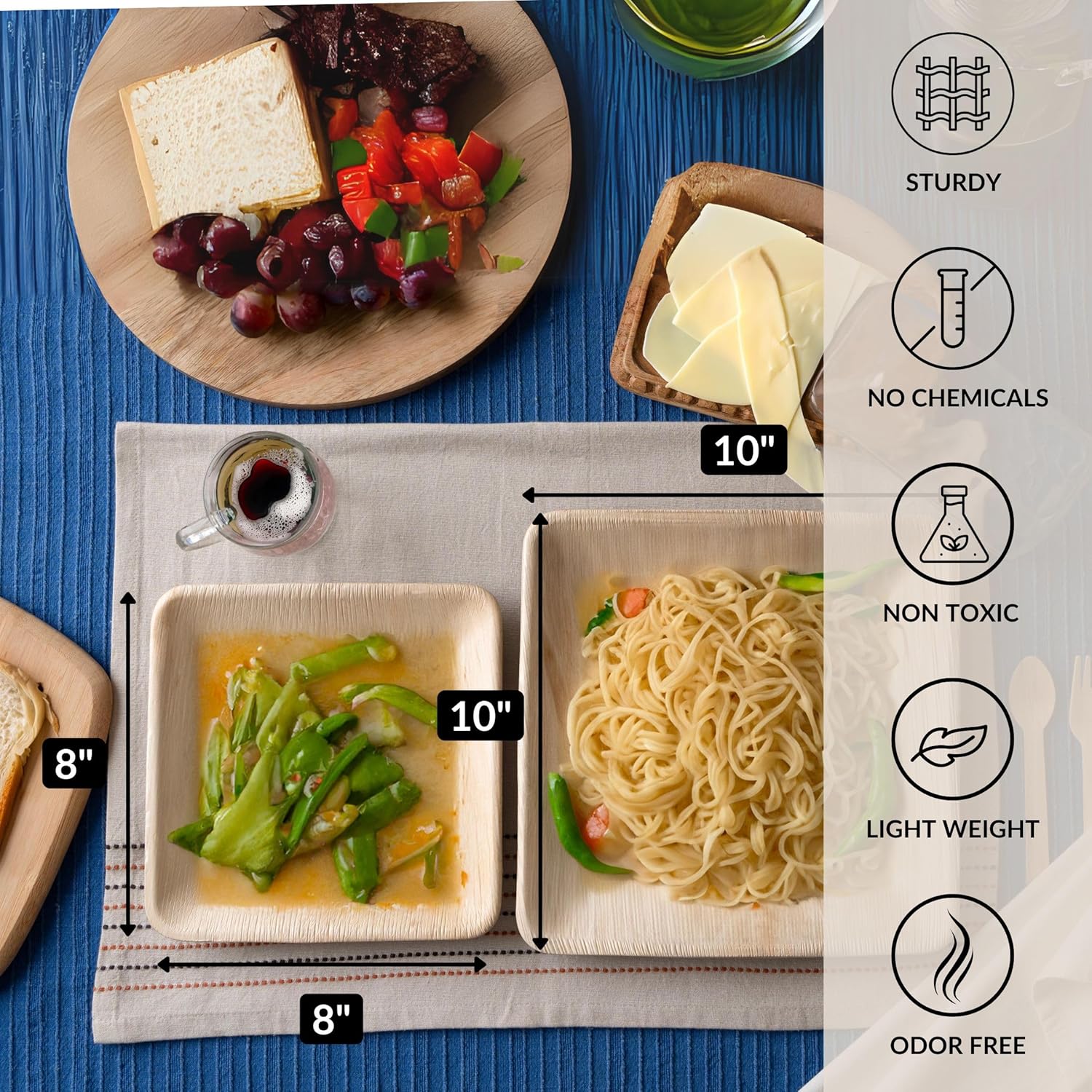 - SAFE FOR YOUR FOOD: Our eco friendly plates are specifically designed for food safety, able to withstand high temperatures without warping or releasing harmful substances. They are free from toxic chemicals, dyes, and coatings commonly found in plastic and paper plates, ensuring a pure and safe dining experience for you and your guests.