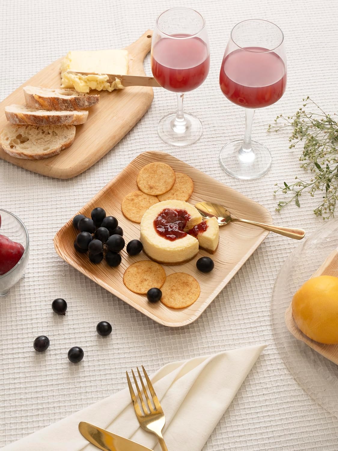 - ADD ELEGANCE TO YOUR PARTY: Elevate your event with our high end disposable plates, crafted to exude natural sophistication. Each plate boasts a unique texture and grain, offering a refined, rustic charm that enhances the overall elegance of your table setting.