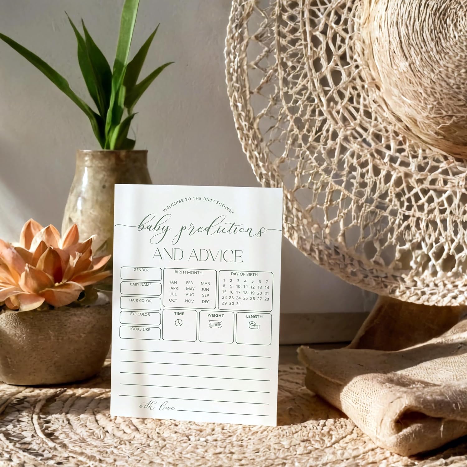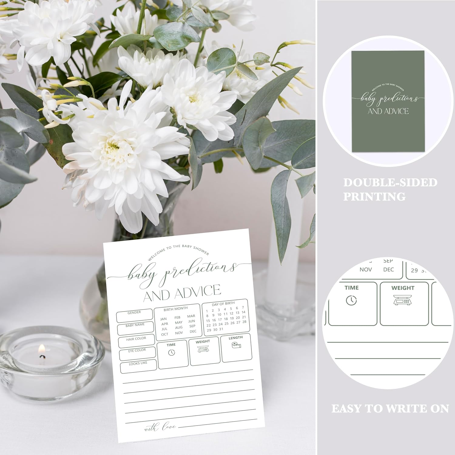 Advice For New Parents Baby Shower, Baby Predictions & Advice Cards For Baby Shower Games Activities, Wishes for Baby, 25 Double-Sided Thick Cards – Minimalist Green A07