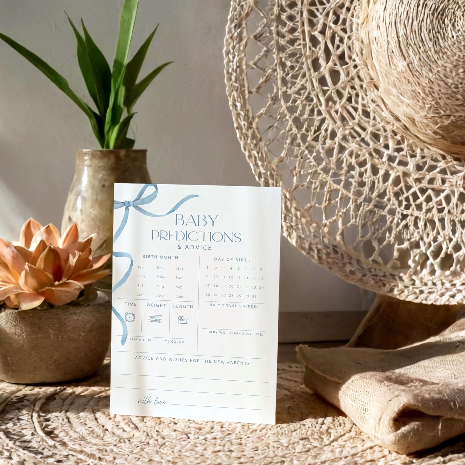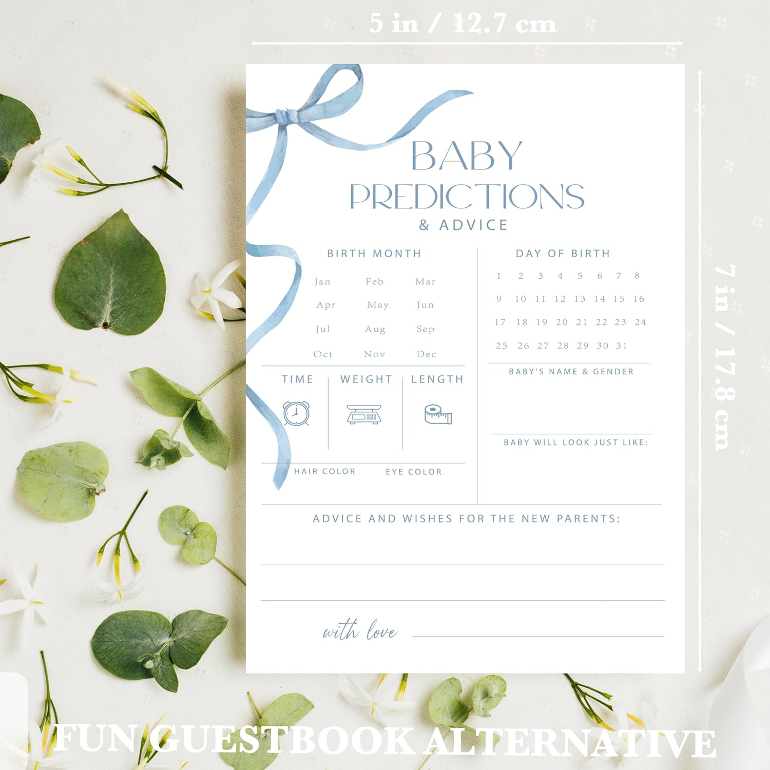 Advice For New Parents Baby Shower, Baby Predictions & Advice Cards For Baby Shower Games Activities, Wishes for Baby, 25 Double-Sided Thick Cards – Blue Bow A02