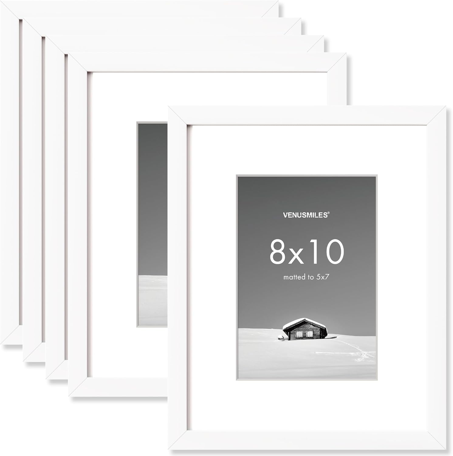 8x10 inch Picture Frame, 8x10 Photo Frames with 5x7 Removable Mat - High Definition Plexiglass - Vertical and Horizontal Display - Wall Hanging Frame - White, 5 Pack