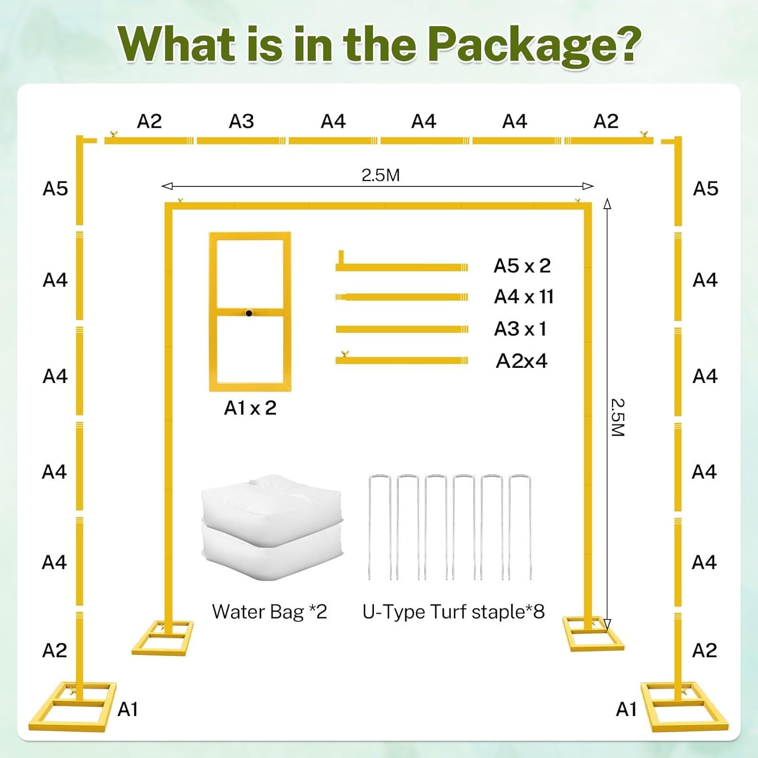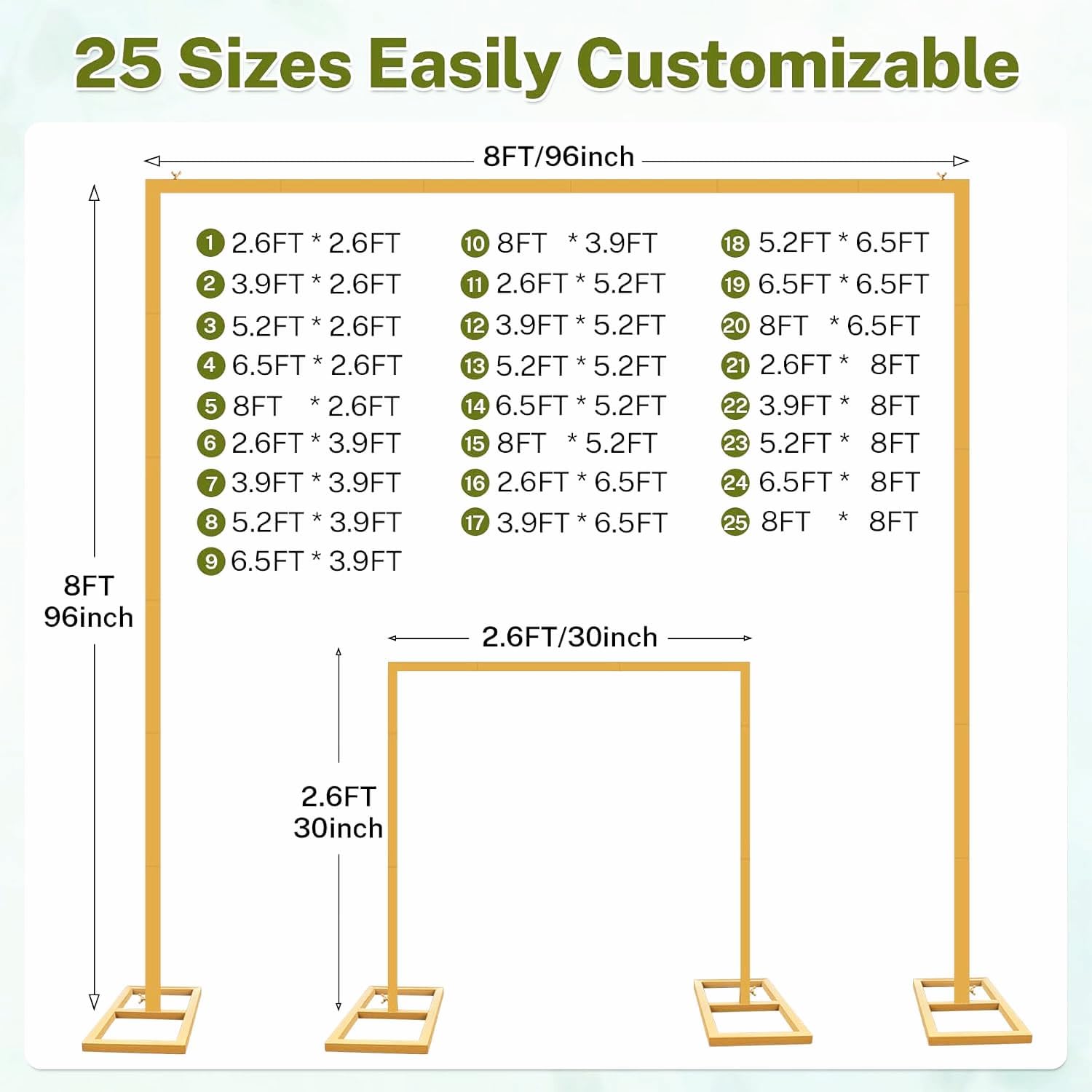 - [Heavey Duty Backdrop Stand] Our 8FT heavy-duty square backdrop stand features a gold rust-resistant finish and a sturdy, premium iron base for superior stability. Unlike other arch backdrop stand that use screws, which can loosen over time, our pipe joints connect via a rotating mechanism for a more secure and long-lasting hold. It also comes with a waterproof storage bag, making it easy to store and transport.