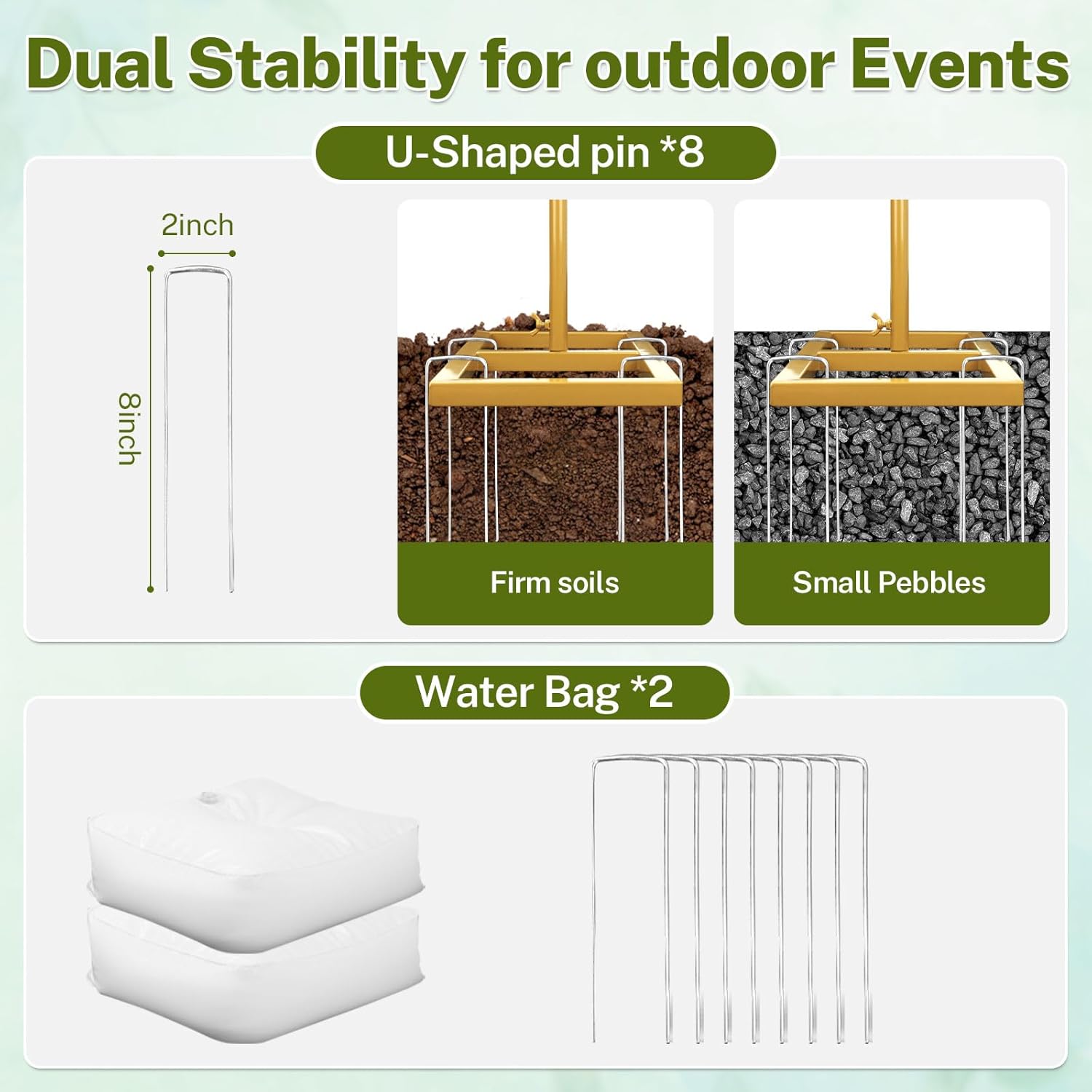- 【Enhanced Stability Features】 For added security, our back drop stand comes with 8 ground stakes to anchor it on outdoor surfaces like grass or gravel. Additionally, two extra water bags are included to increase wind resistance during outdoor events, ensuring the stand remains firmly in place indoors or outdoors.