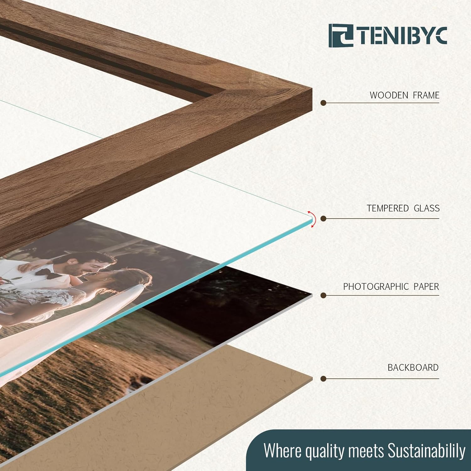 - 【Strong Ornamental Value】TENIBYC walnut frame, like a delicate painting endowed by nature. The color is a steady brown, embellished with dark or light black wood grain, which looks natural and elegant from afar, and exquisite and delicate up close