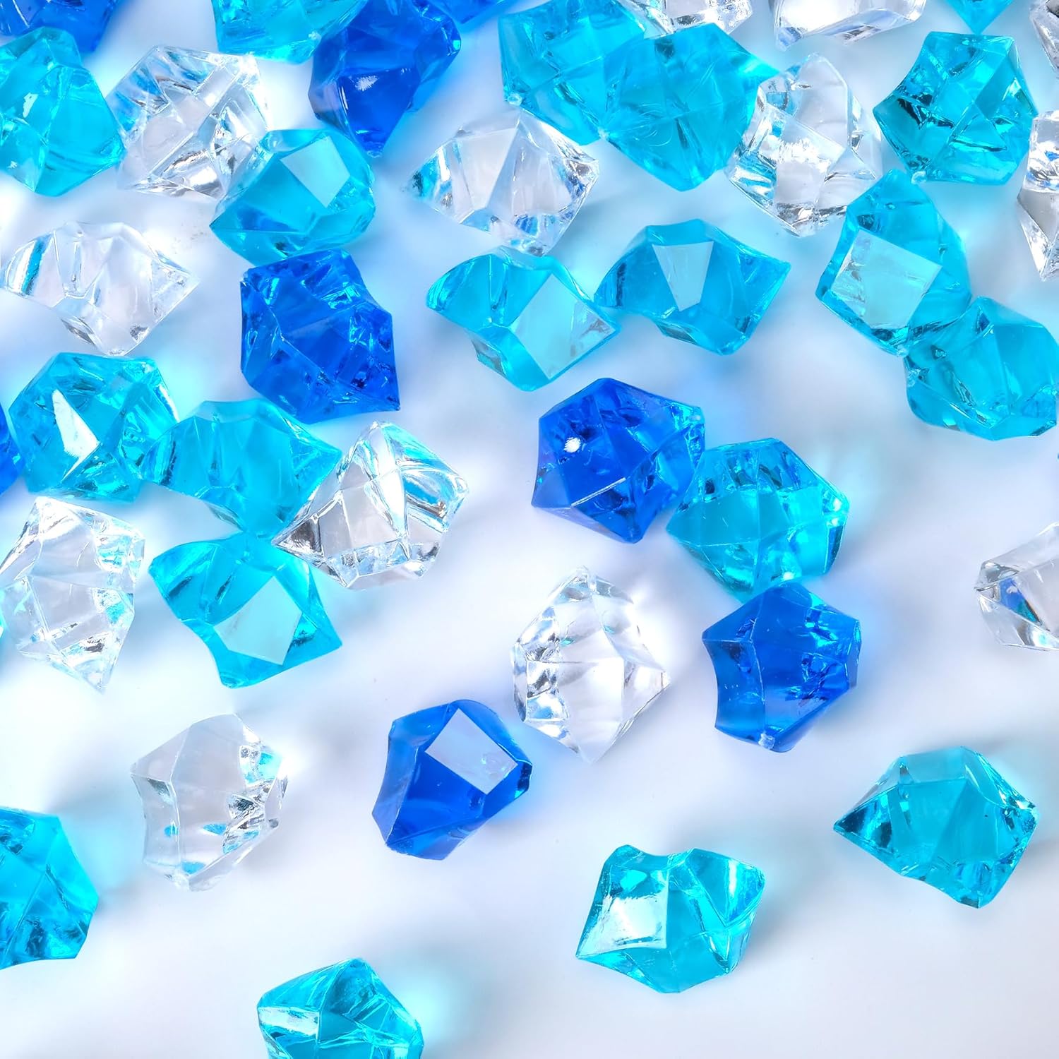 Acrylic Crushed Ice Rocks, Babenest 150 PCS Fake Crystals Plastic Ice Cubes Diamonds Gems for Vase Fillers, Home Decoration, Table Scatter, Event, Wedding, Arts & Crafts (Clear/Rpyal Blue/Baby Blue)