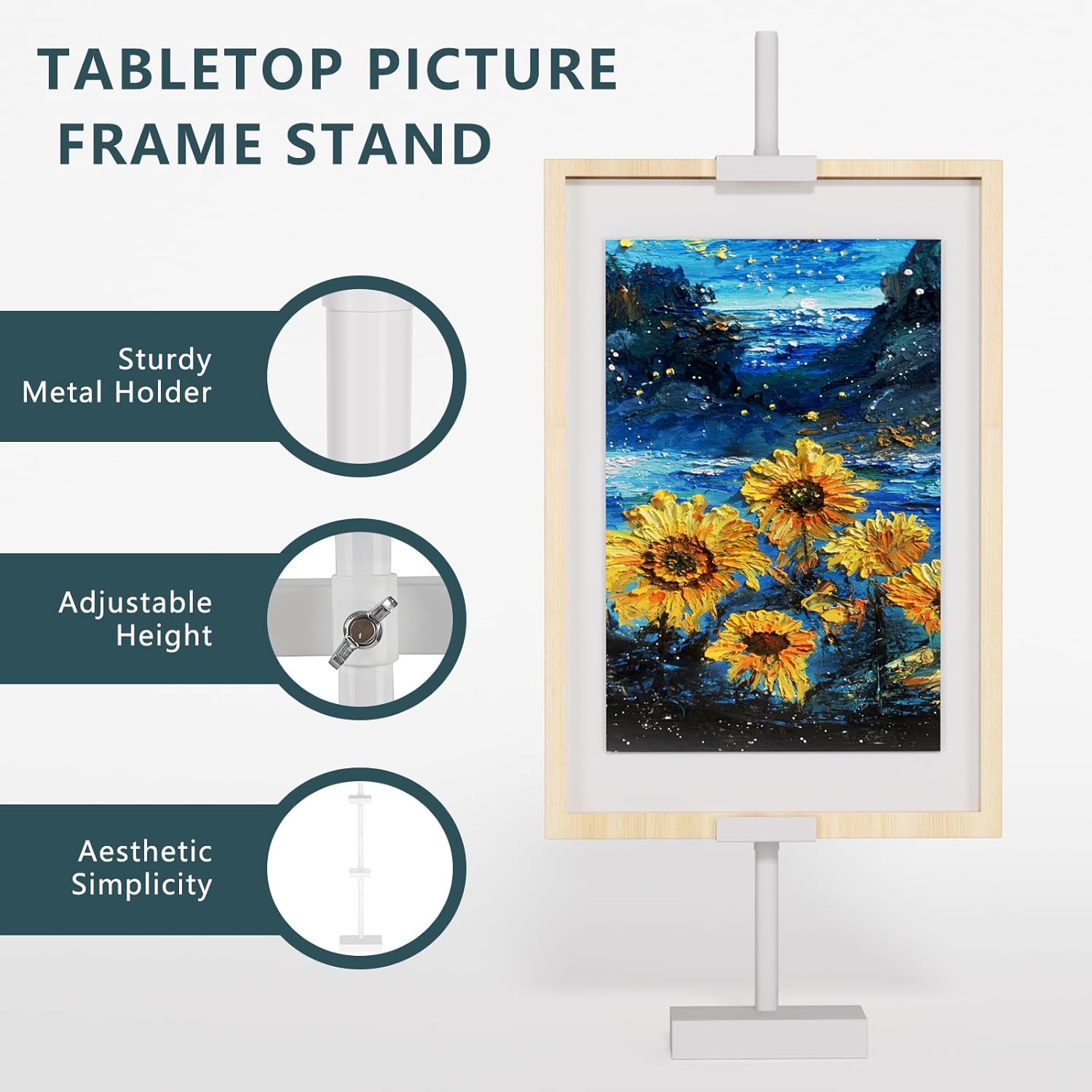 - ADJUSTABLE: Experience the ultimate flexibility in showcasing your artwork and memories with our adjustable art display stand for table. Freely adjustable height to fit your frame(up to 29.7"H, 1.5"D). Note: Please do not overtighten while adjusting to avoid damaging the coating.