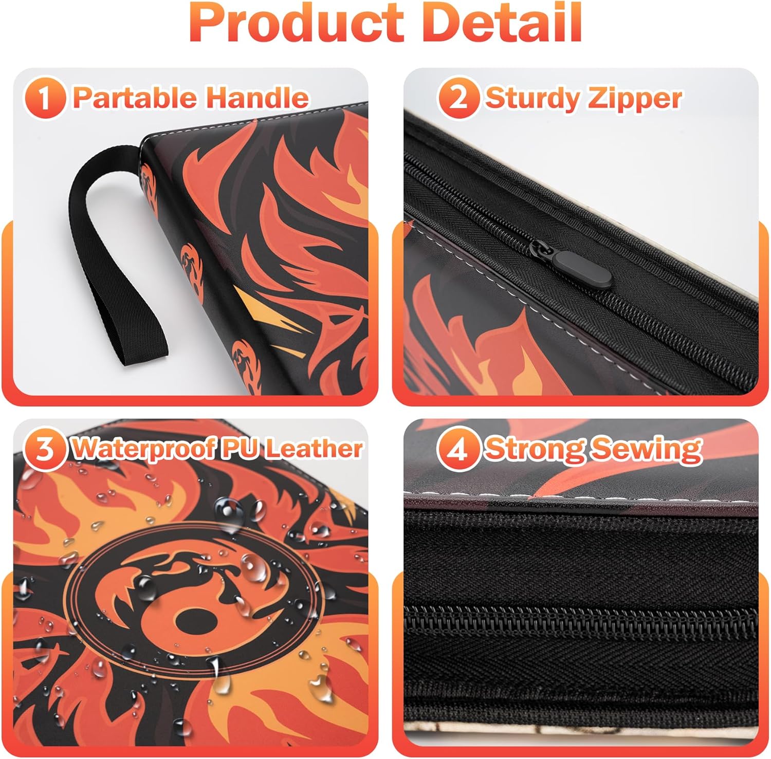 - Made To Last :our carrying case binder is comfortable to touch and hold in hands. The card binder for trading cards is made of premium PU leather, Water or raindrops won’t seep through. Closed zipper design provides multiple protections so that the inner page or cards does not fall.Handle straps design can carry around to show off cards to your friends