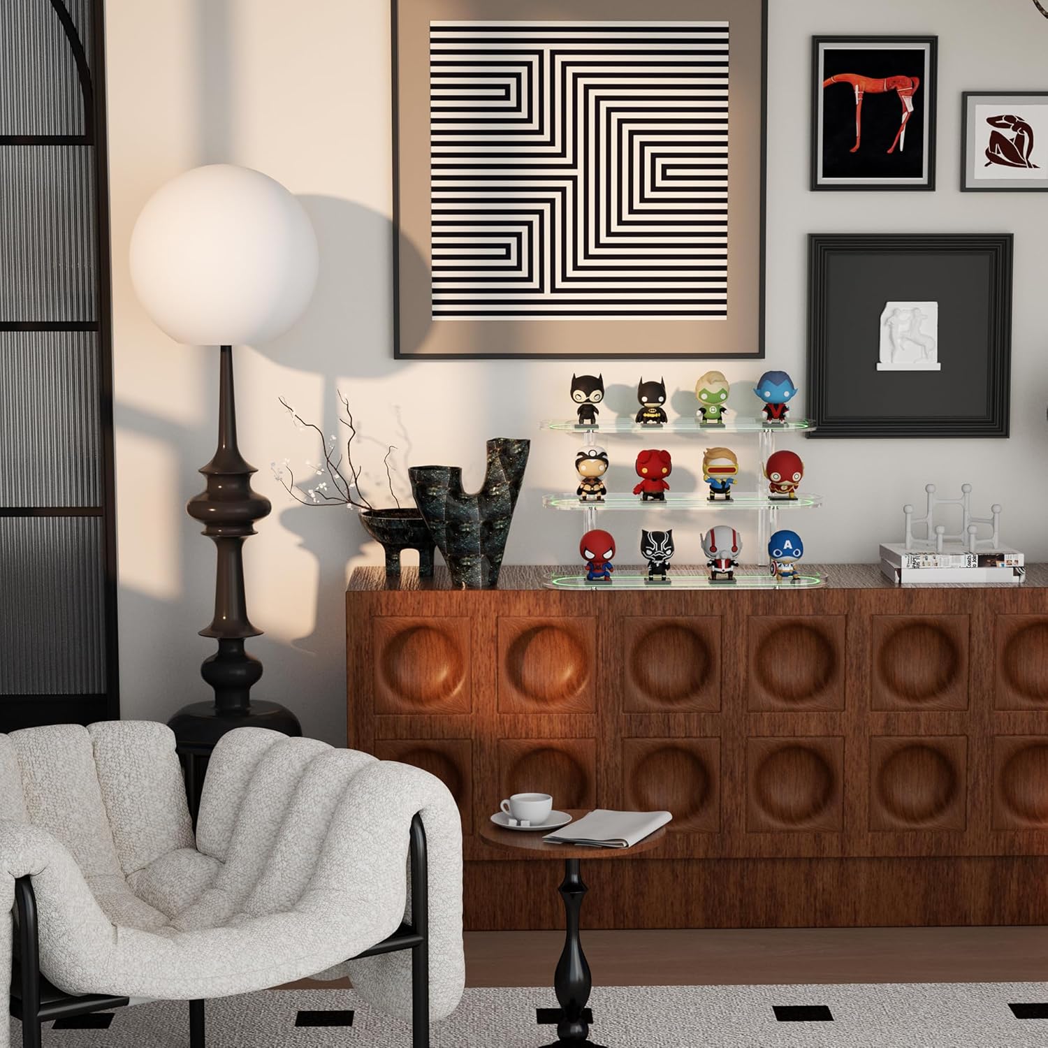 - SAVES SPACE & NEATLY ARRANGED: You can find your items quickly and easily, no more digging through messy drawers. Acrylic riser display stands are easy to place, perfect for your dresser, table organization or 𝐚𝐦𝐢𝐢𝐛𝐨 Funko-POP display case and they complement any room color or theme