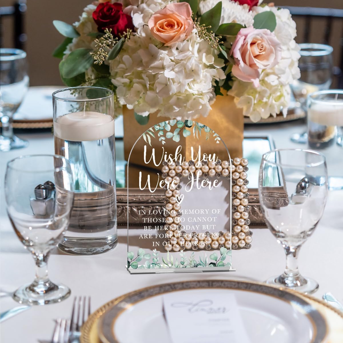 Acrylic Wedding Sign Wish You Were Here Signs for Ceremony Modern Calligraphy Arch Acrylic Table Top Signs for Wedding Reception and Event Party Table Decor (Eucalyptus Leaves)