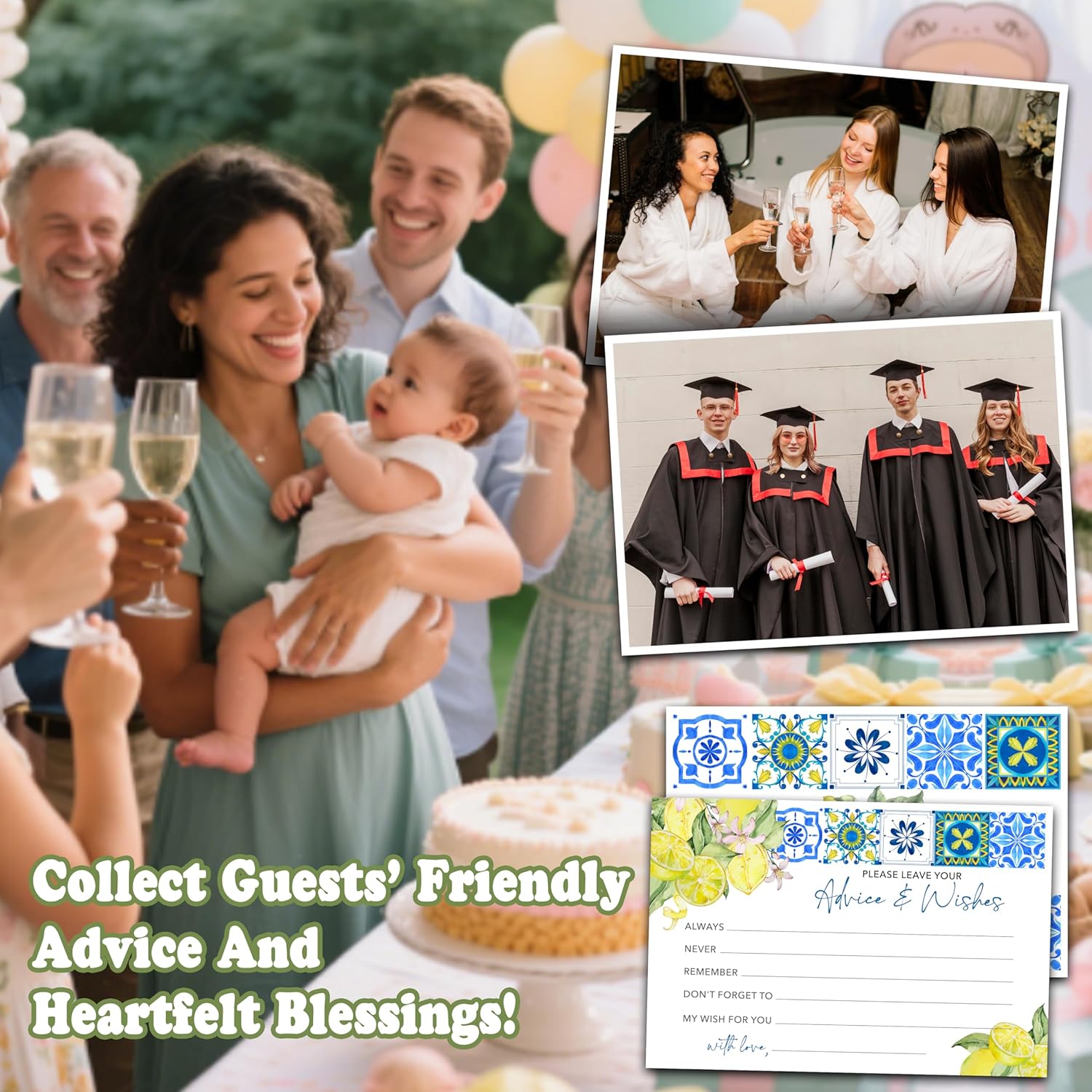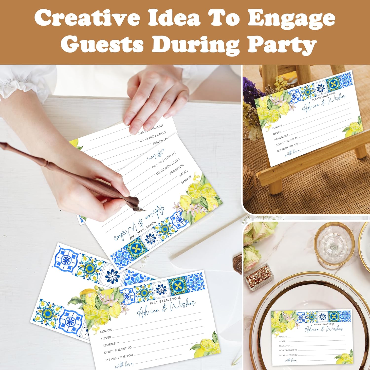 Advice And Wishes Cards (25pcs), Mediterranean Lemon Advice Cards For Mr And Mrs, Bride And Groom, New Parents, Bridal Shower, Baby Shower, Engagement, Wedding, Bachelorette Party Games Decor -A03