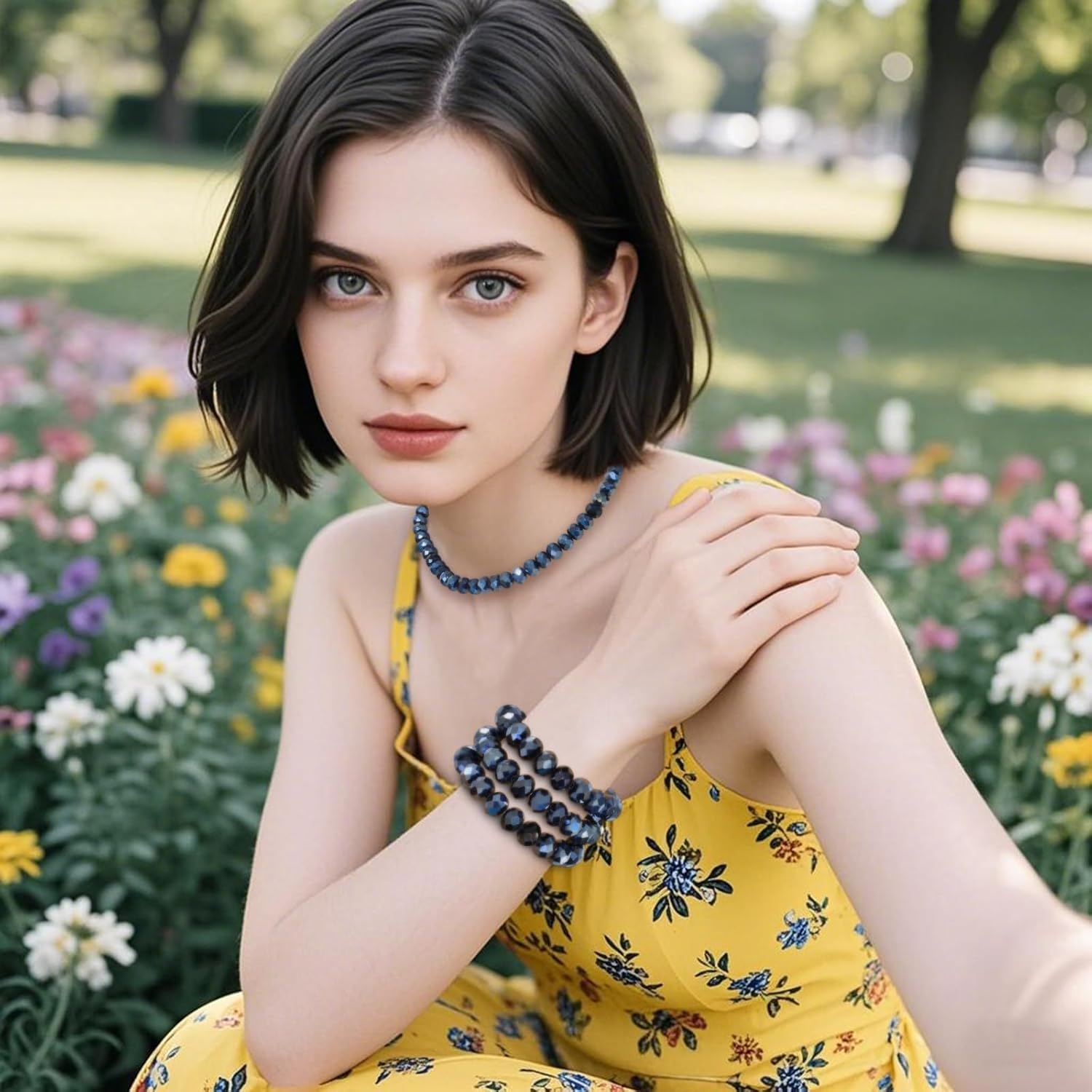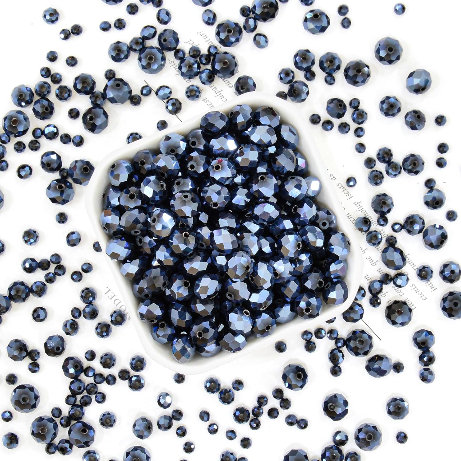 800Pcs 4/6/8/10mm Crystal Glass Beads for Jewelry Making Beads for Bracelets Necklace Pendants Making Supplies(Navy Blue)