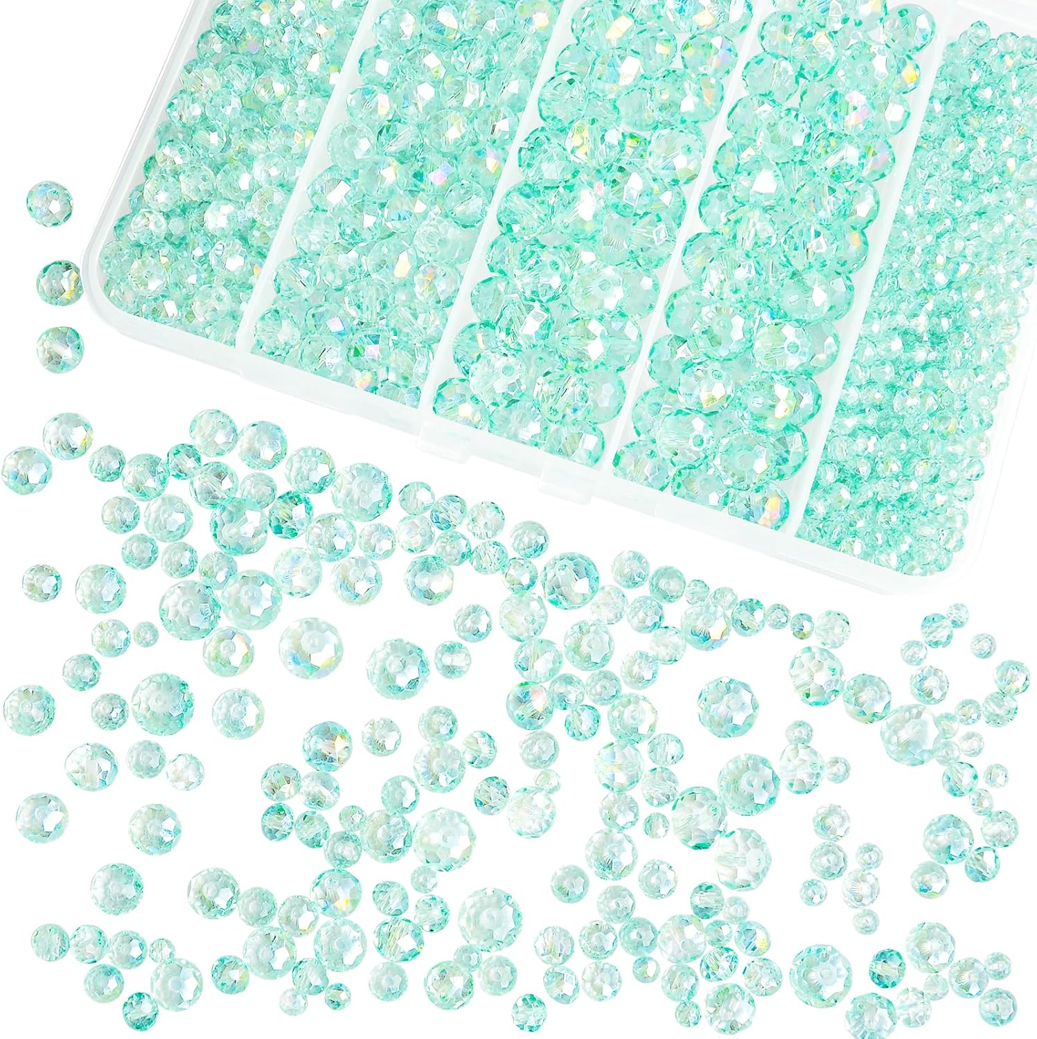 800Pcs 4/6/8/10mm Crystal Glass Beads for Jewelry Making Beads for Bracelets Necklace Pendants Making Supplies(Light Blue Green)