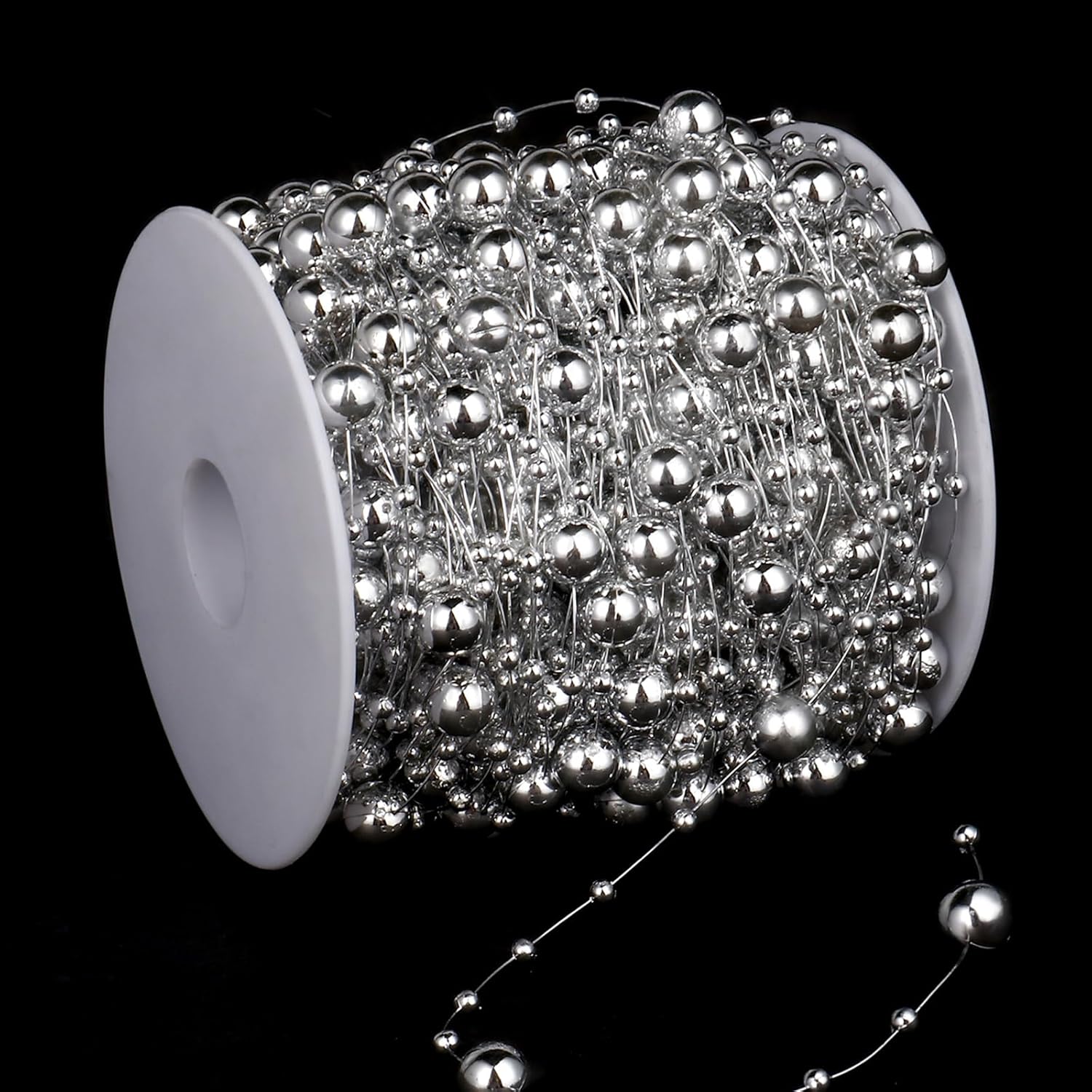- 【ABS Pearl Beads Garland】The silver color pearl beads garland is made of high quality ABS material with plastic wires. Lead free and will not irritate skin; Waterproof and odorless; Fading and peeling free; Mellow pearl strand with smooth surface and shiny.