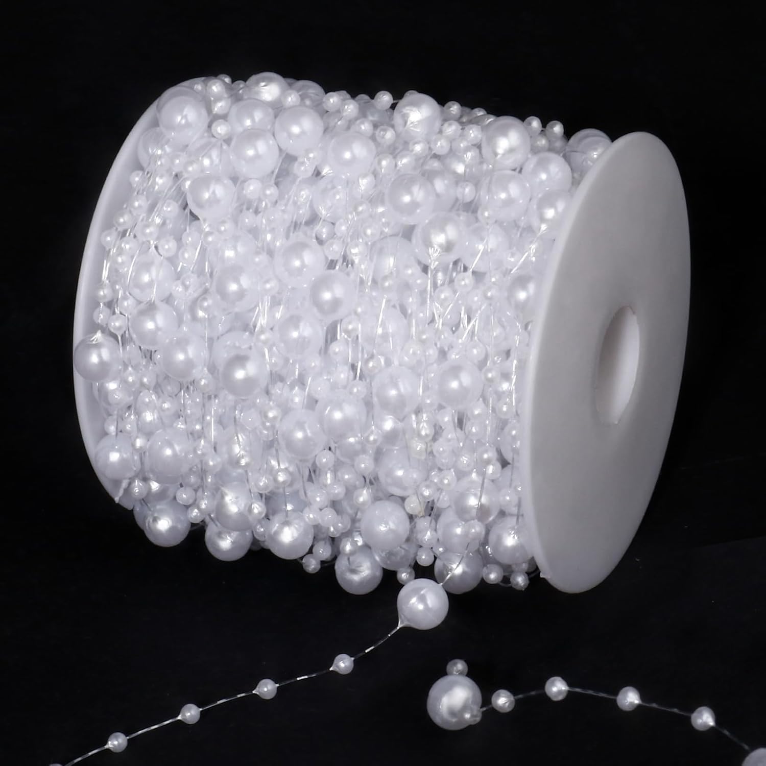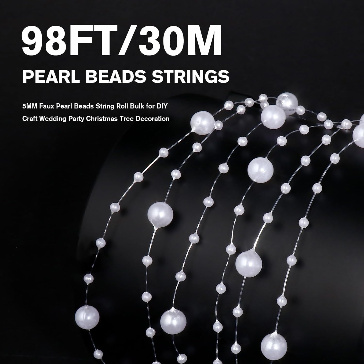- 【98FT Pearl Bead String】The pearls garland string is 98 feet( 30 meters) of each roll spool, it can be cut easily with scissors to desired length without falling apart.