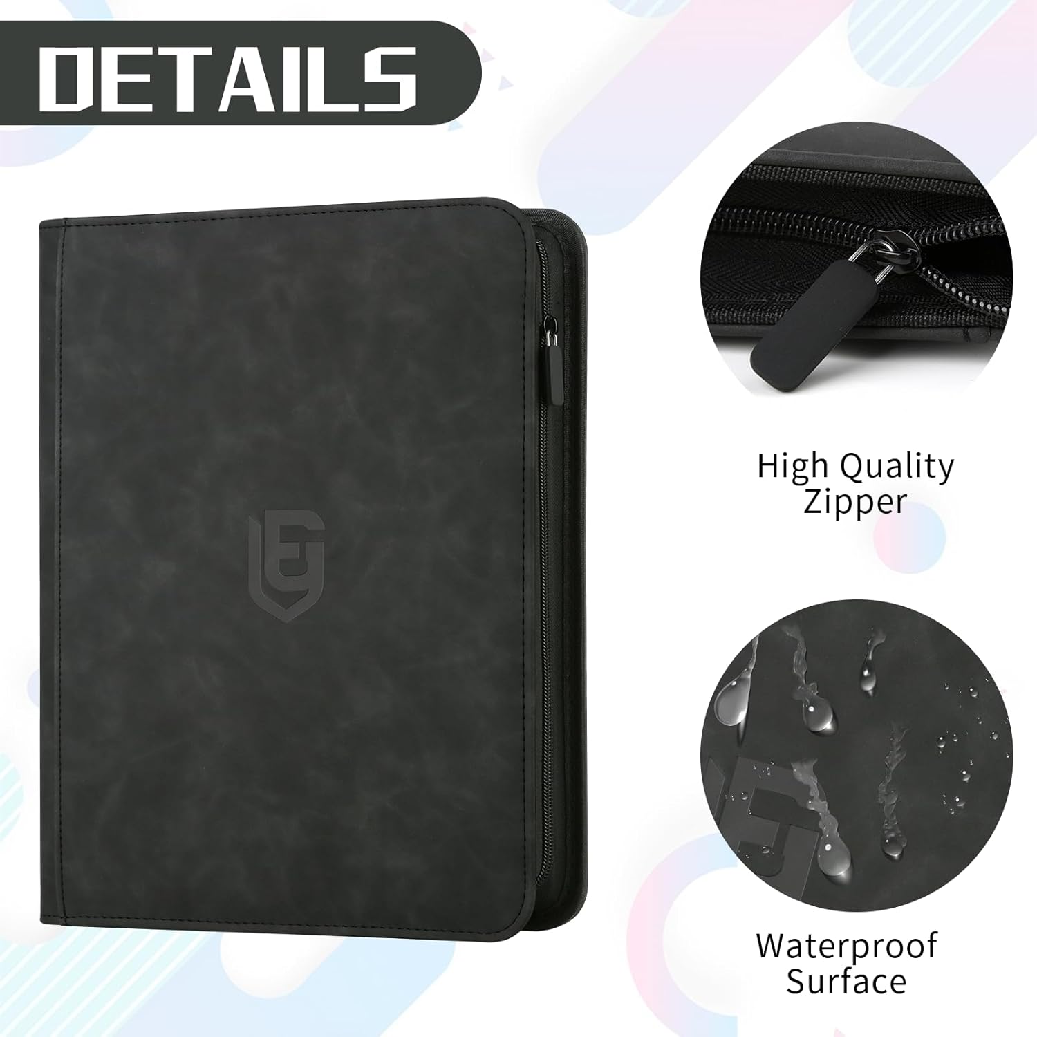 - DETAILED DESIGN:The card binder is made of premium PU leather, water or raindrops will not penetrate, different colors of the trading card binder with different colors of the zip, to meet your personalised needs. Side card pocket prevents cards from spilling out and protects your cards from fading and staining