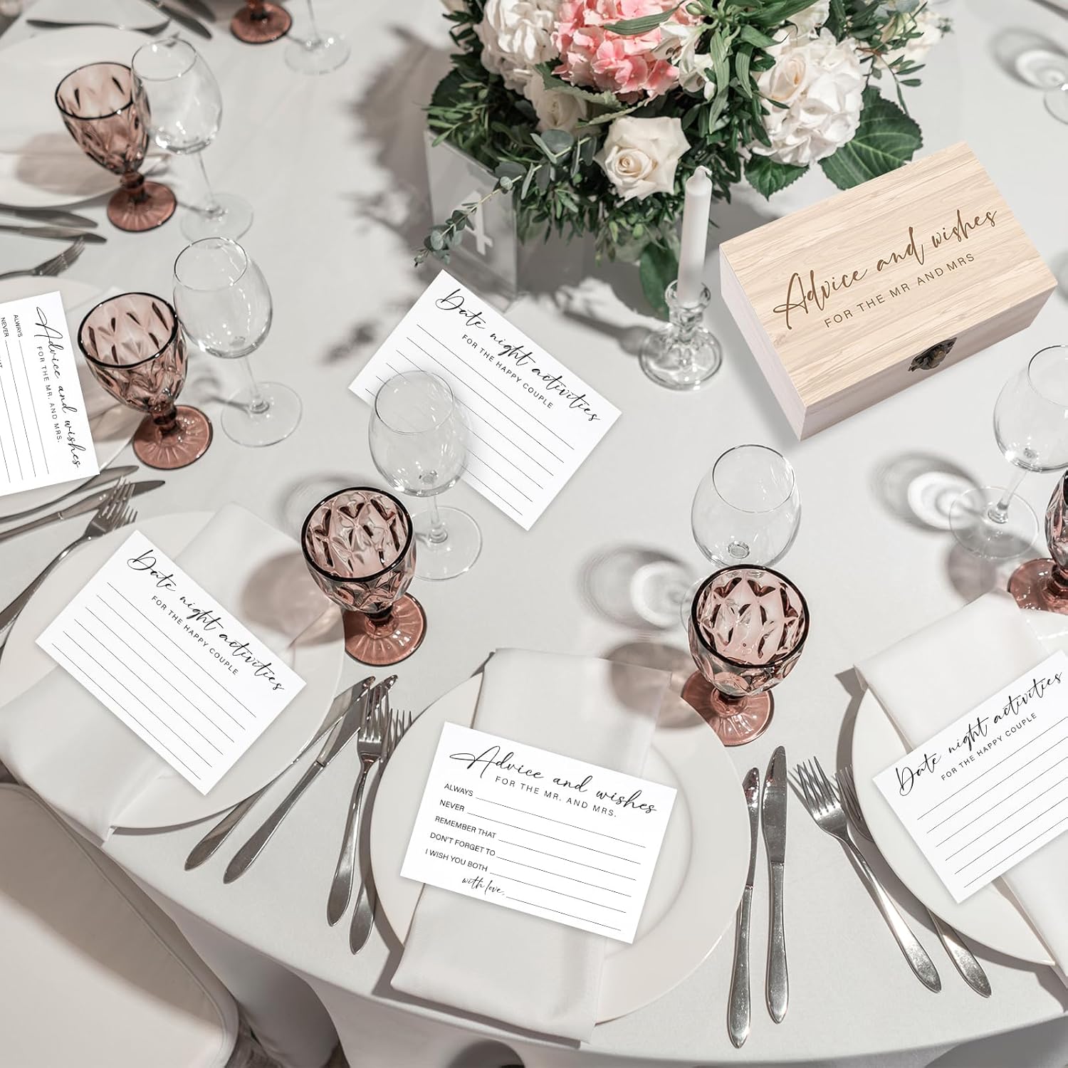 - Weeding Advice and Wish Cards Wooden Box: there are 80pcs wedding advice and wishes cards in the package,2pcs black pens,1pcs wooden box,2pcs folded instruction card,so your friend and family can have fun when giving advice and well wishes for couple life's big moments
