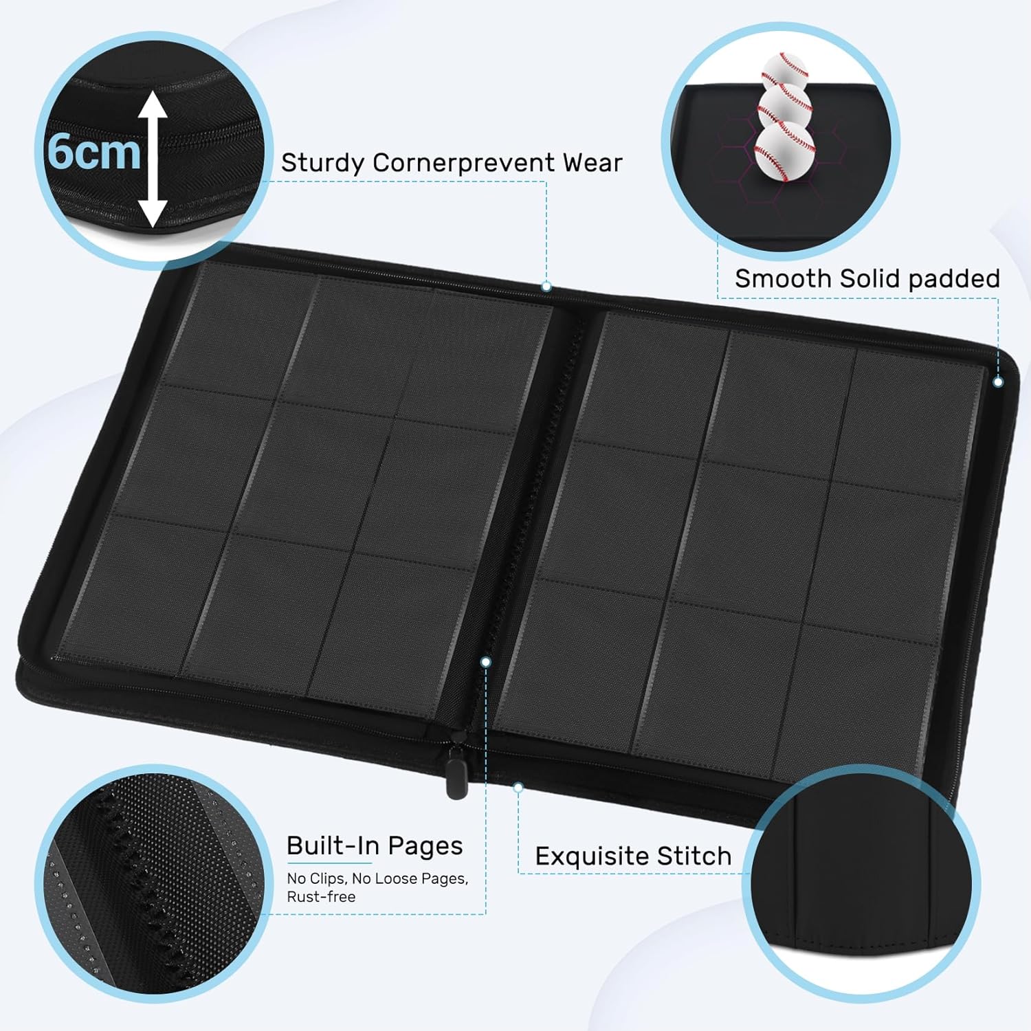- Ringless & Zippered Design: Our large-capacity card folder features a ringless structure and a smooth, sturdy zipper to eliminate page misalignment and accidental scratches. The durable, easy-glide zipper with a widened closure offers full-edge protection—keeping your cards securely enclosed and shielded from dust, spills, and drops, whether at home or on the go.