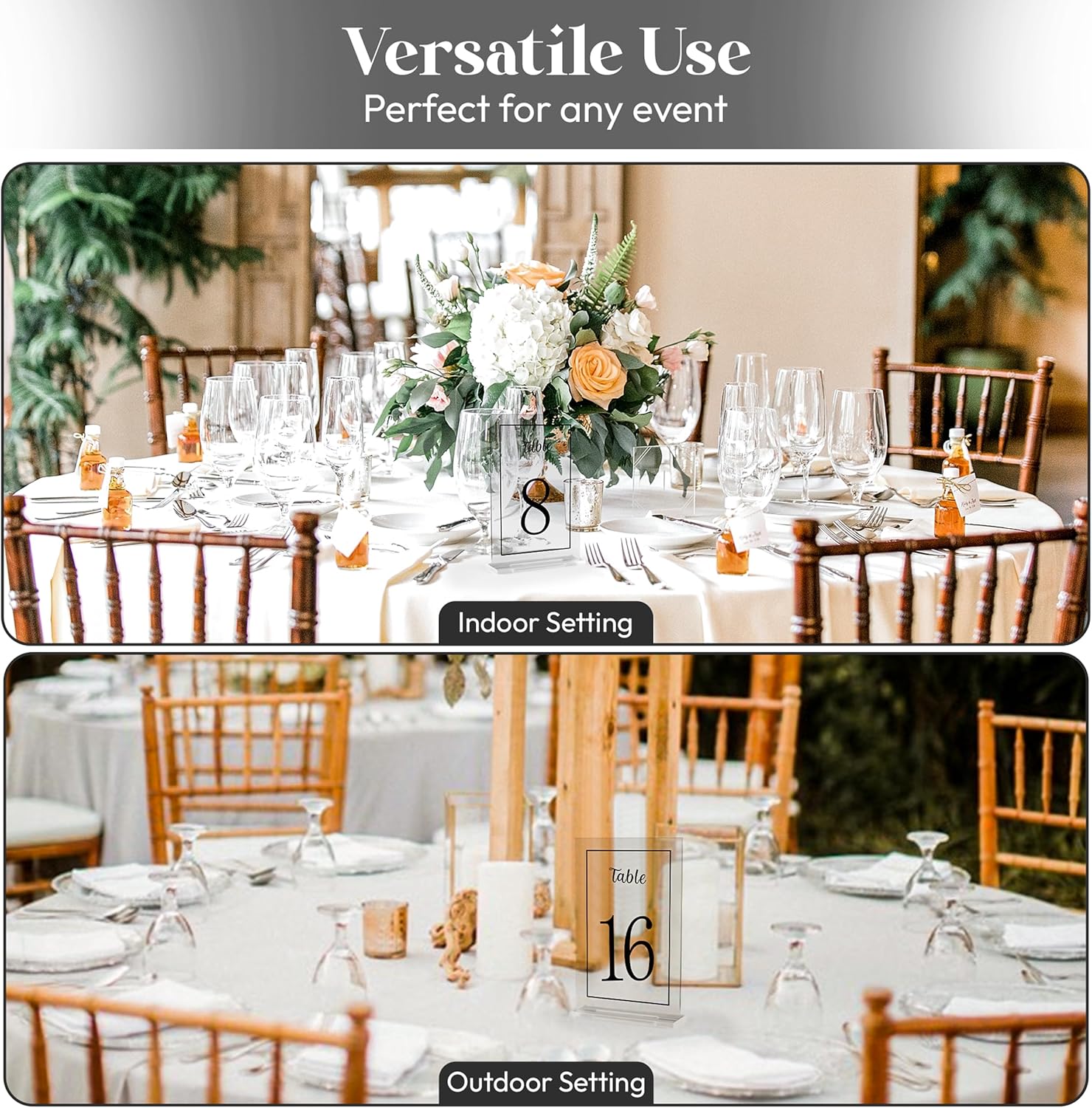 - [MULTIPURPOSE] The acrylic table numbers are versatile and can be used for various occasions and important events such as weddings, parties, anniversaries, birthdays, engagements, baby showers, rehearsal dinners, celebrations, bridal showers, cafes, buffets, etc. Organize your events with perfect seating for your guests and enjoy with them.