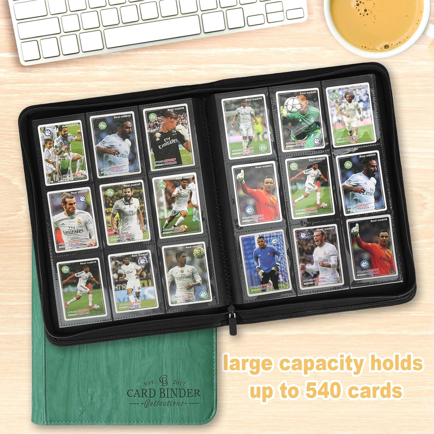 - 【Large Card Storage Capacity】9 pocket per page premium quality zip-u trading card binder.18 pages, It means that it can hold 540 cards,providing plenty of space to get all your cards organized
