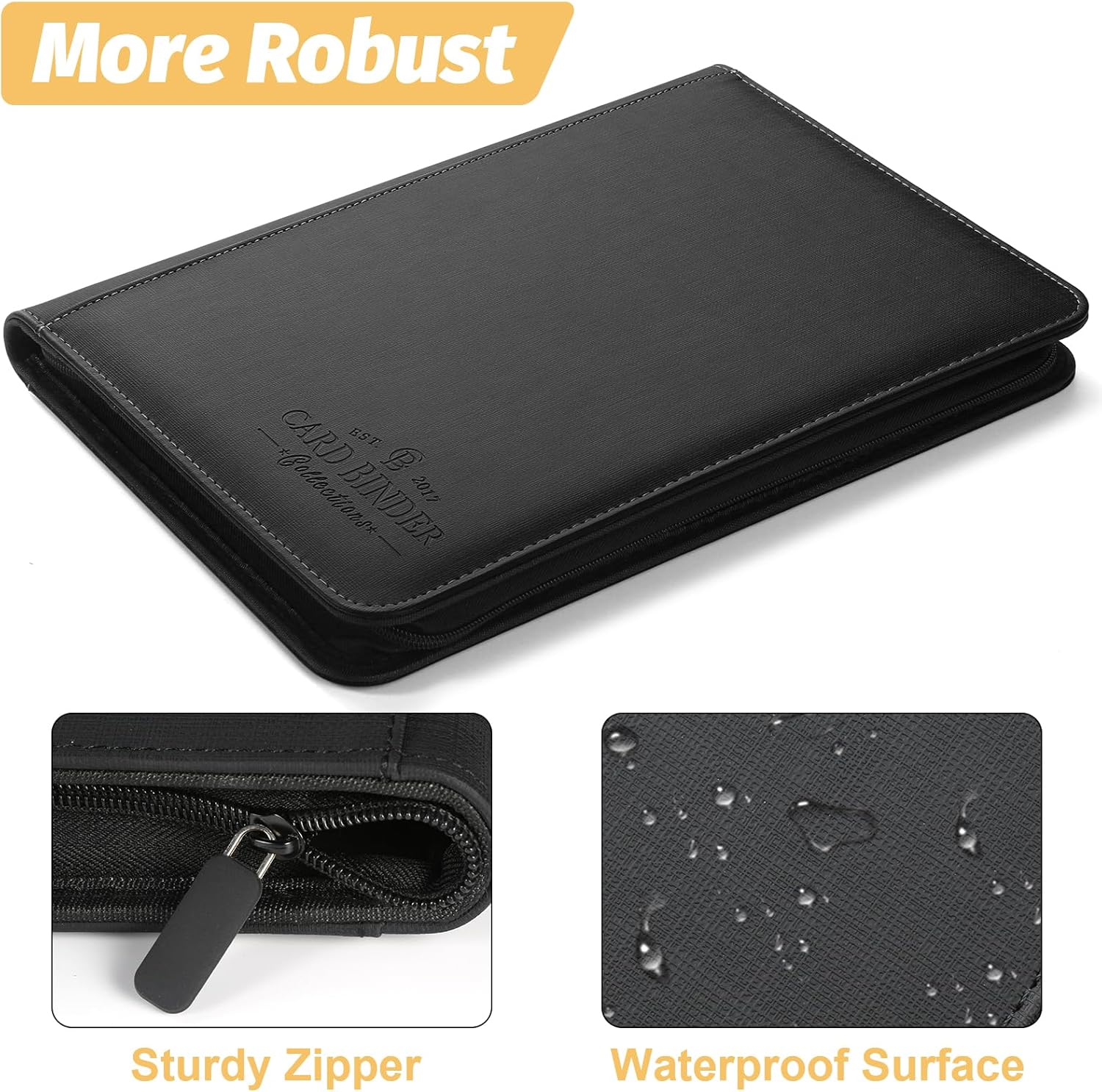 - 【Design Advanced】9-Pocket Trading Card Binder with black middle material gives cards a classic framed look and enhances the art on each cards.And compatible with all standard card sleeves.