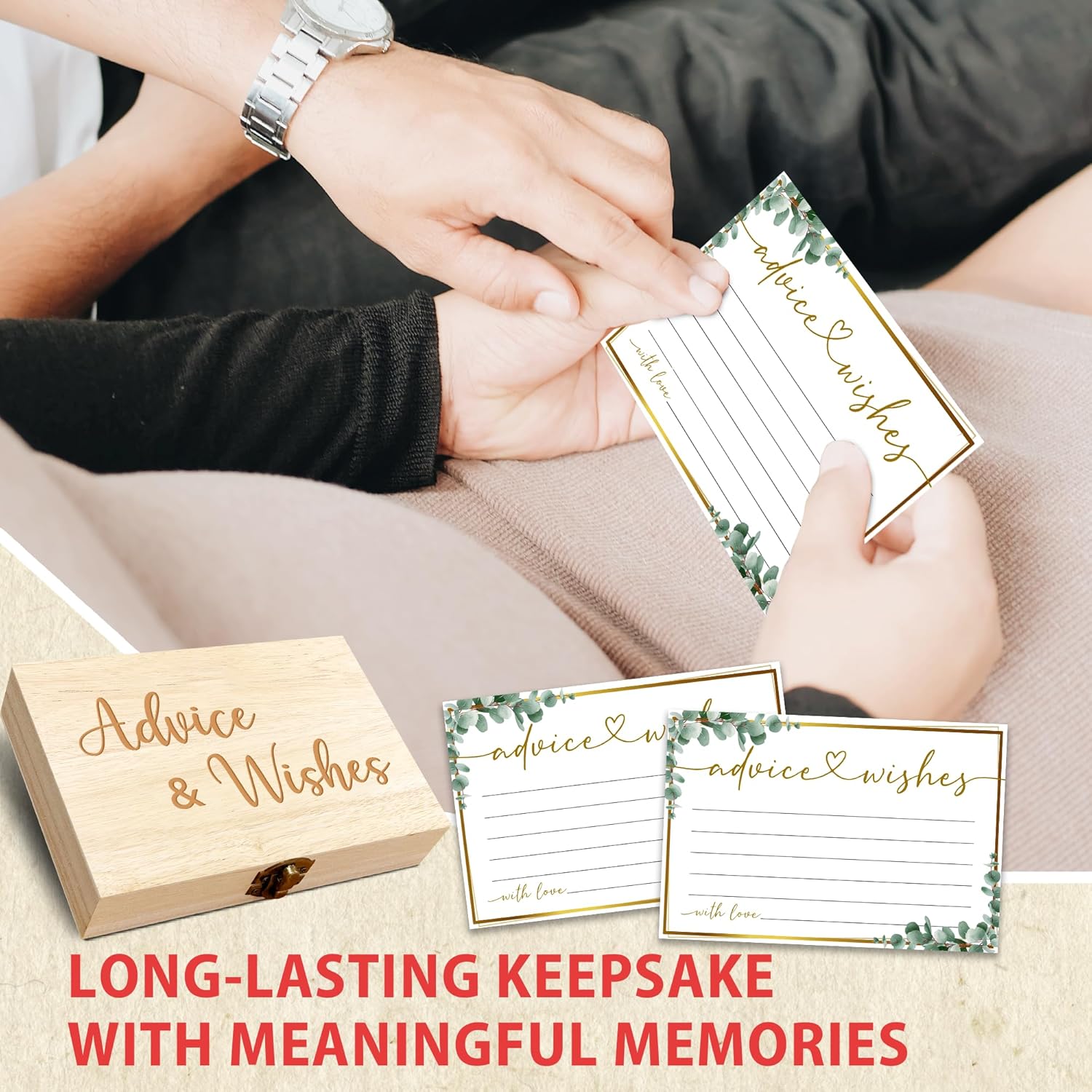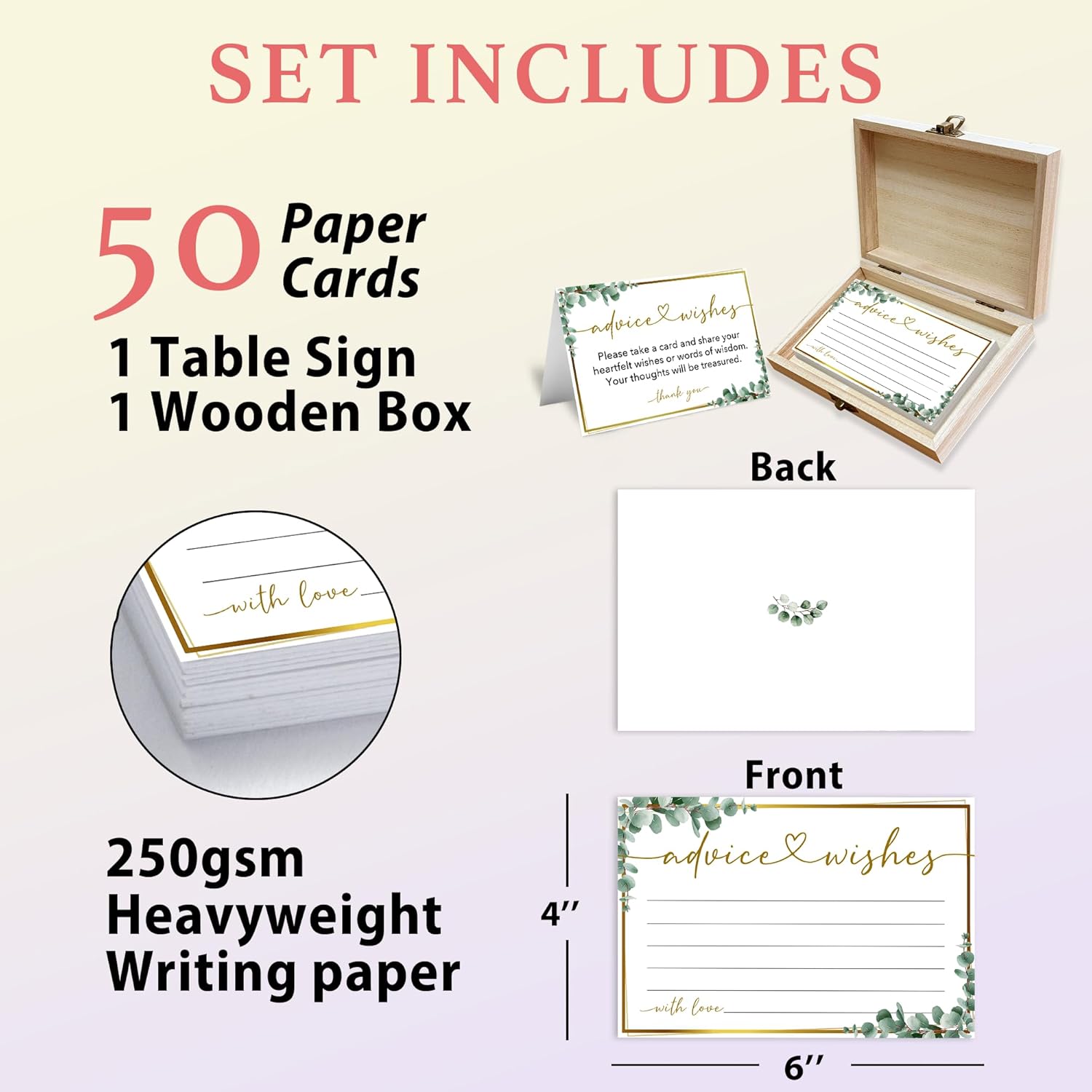Advice and Wishes Cards Box, 50 Pcs Birthday Wedding Baby Shower Advice Cards, Well Wishes Box for Birthday Party Graduation Bridal Shower Retirement Party, Anniversary(Eucalyptus) -A06