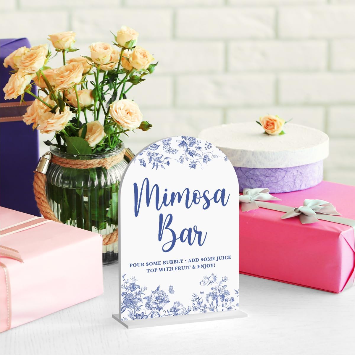 Acrylic Wedding Signs, Dusty Blue Wedding Decor, Blue Weddings Decor, Mimosa Bar Signs for Reception, Modern Calligraphy Arch Acrylic Table Top Sign for Weddings Parties Dinners (White)