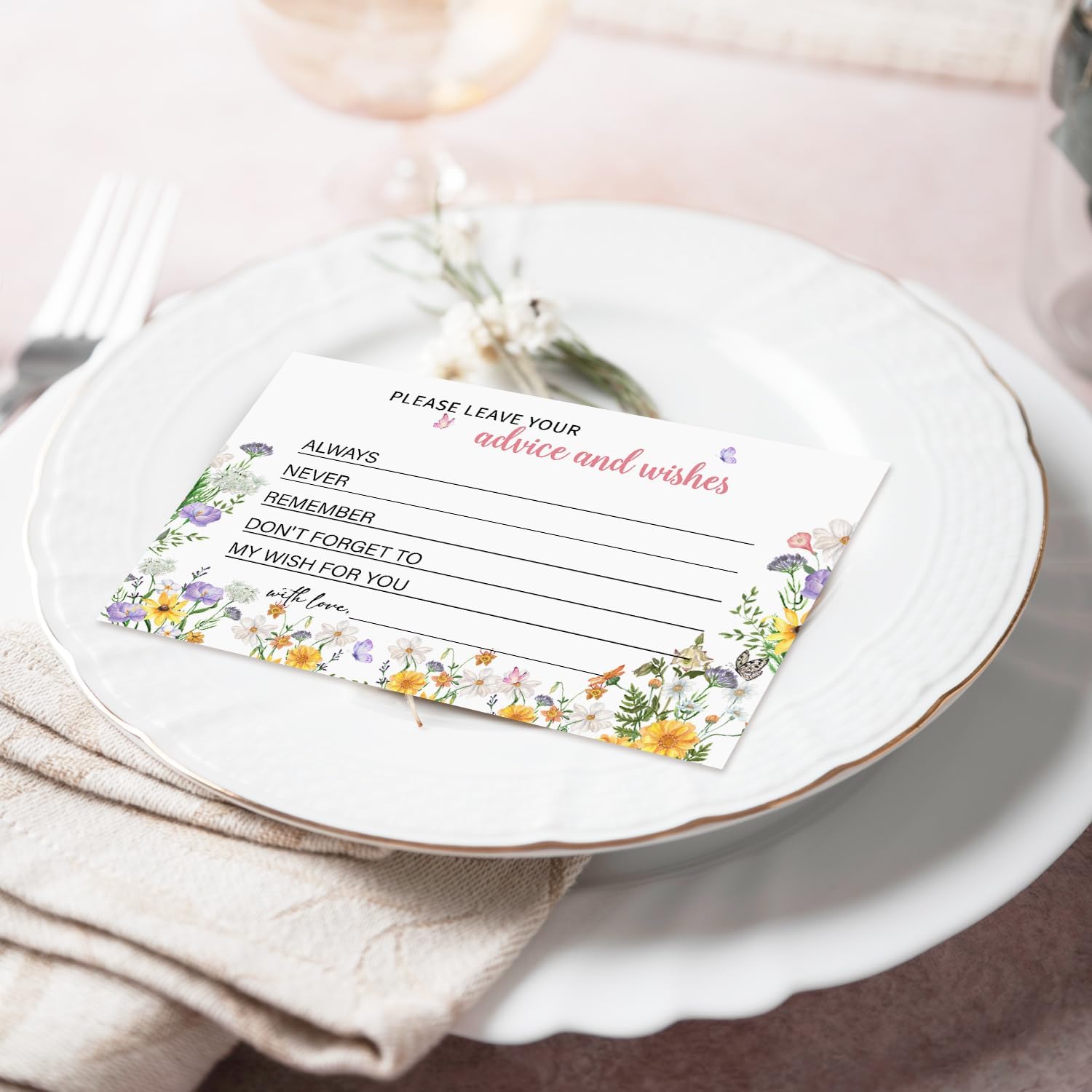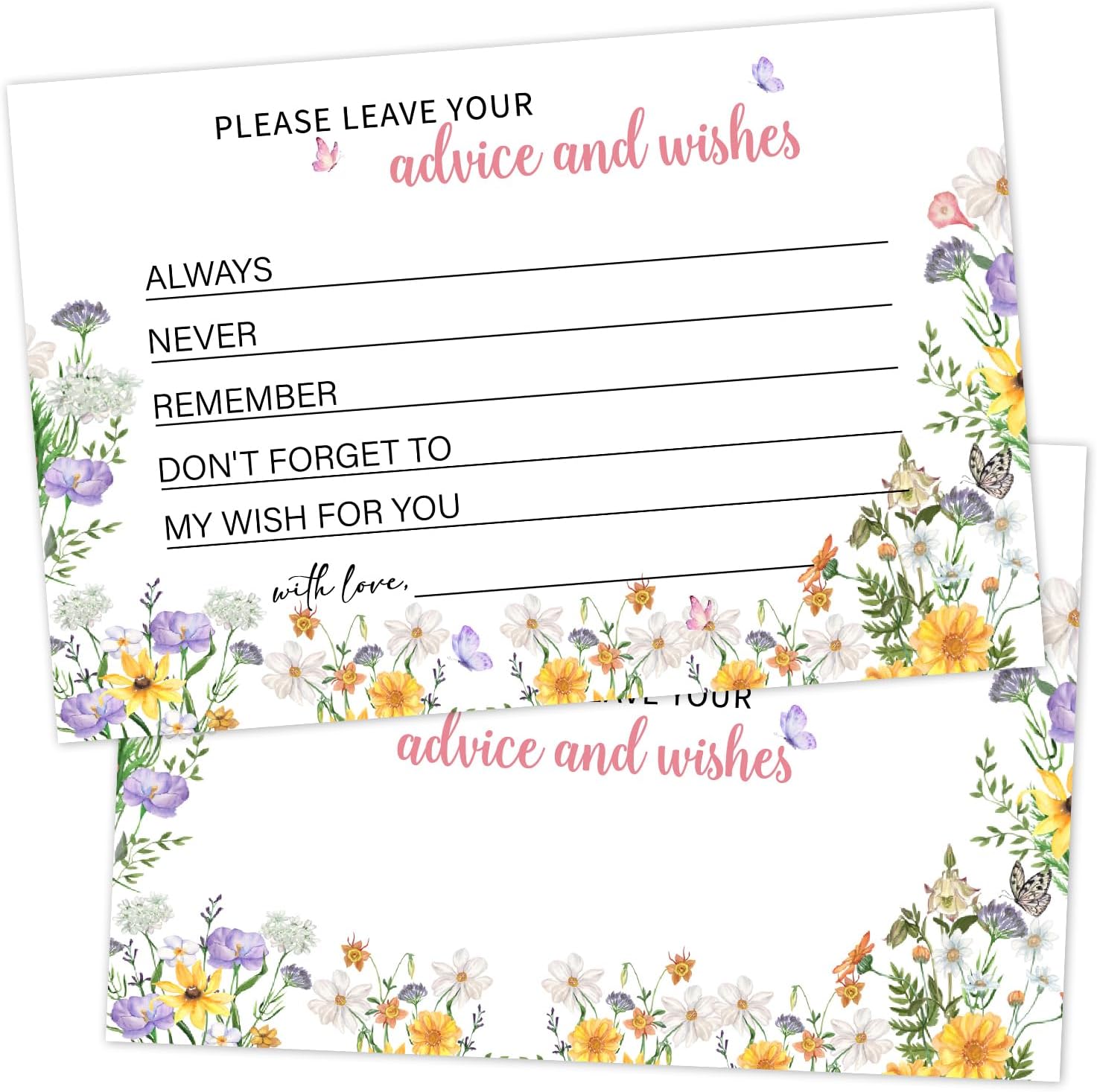 Advice and Wishes For the Mr and Mrs, Wildflower Advice Cards for Bridal Shower, Well Wishes for Wedding, Baby Shower Birthday And Graduation Party, 4" x6", 25 Pack-03