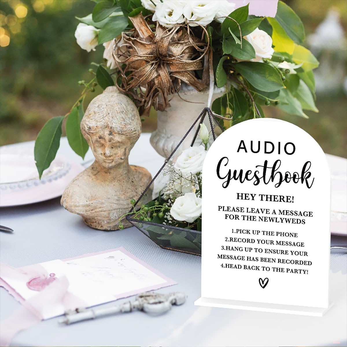 Acrylic Wedding Sign, Bridal Shower Decorations, Audio Guestbook Sign for Ceremony, Modern Font Table Signs, Acrylic Table Top Signs for Wedding Reception Engagement Parties and Event Party (White)