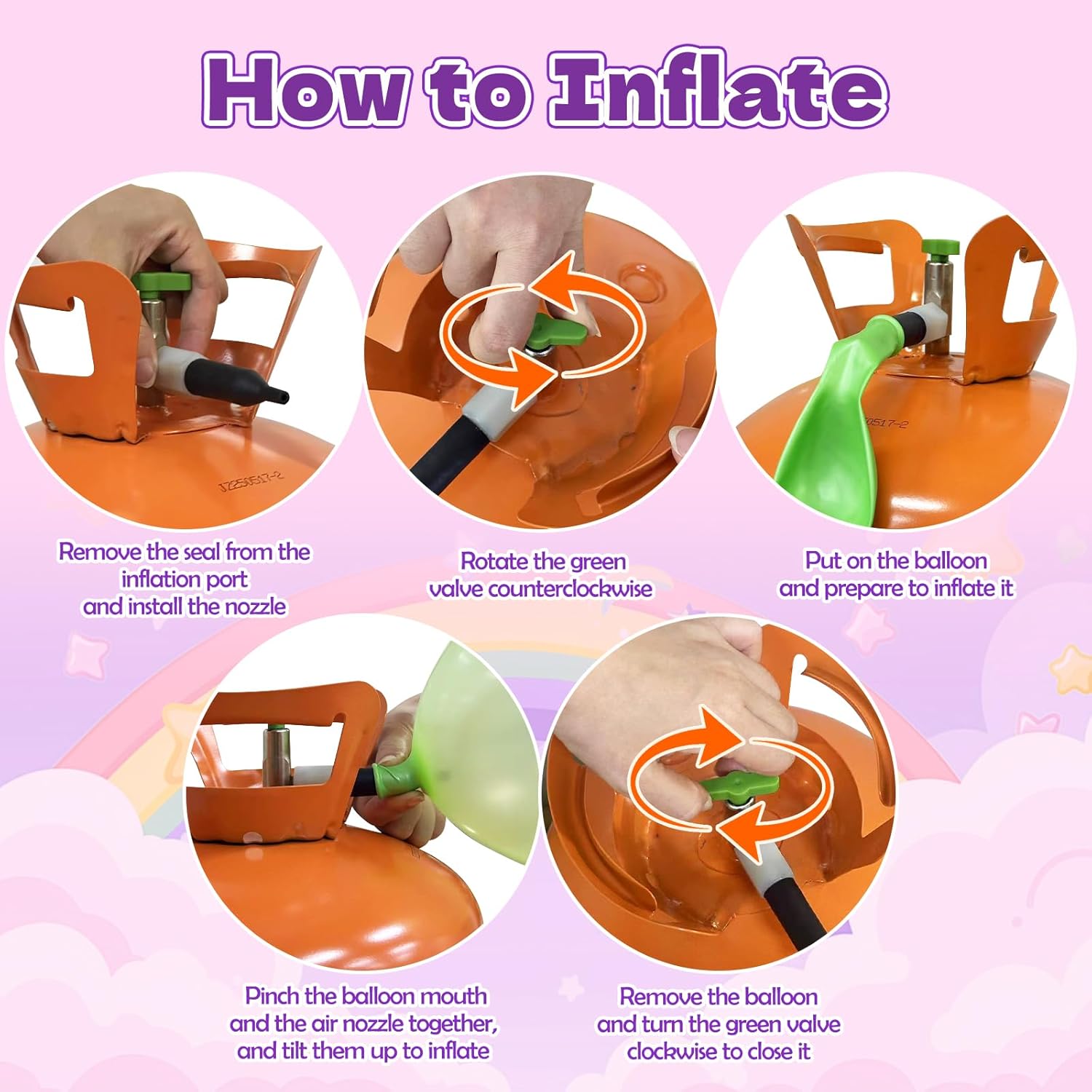 - Helium Tank:1 Tank,99.99% Pure Helium (Non-flammable, Non-toxic - Safe for Indoor Use)ļ¼12.96cu.ft of helium per tank can fill 50 Standard 9-inch Latex Balloons** (Balloons provided are 12-inch size - inflate to 9" for best results).