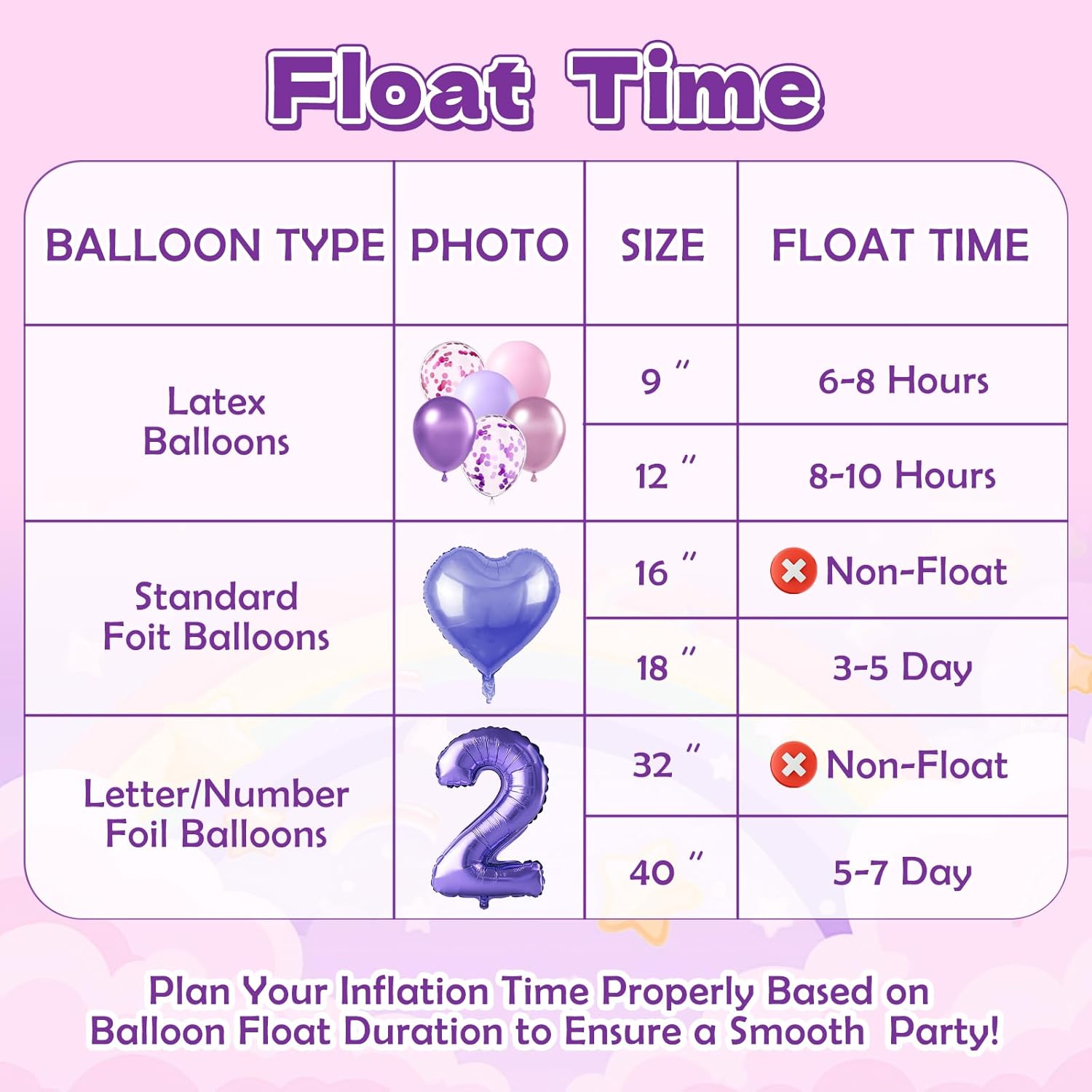 - Pink&Purple Latex Balloons Set: 50 Pieces,12-inch (Uninflated - Inflate to 9 inches)ļ¼2.8g per balloon,6 metallic purple balloons, 6 metallic rose balloons, 13 maca pink balloons, 13 maca purple balloons, 6 rose confetti balloons, 6 purple confetti balloons.