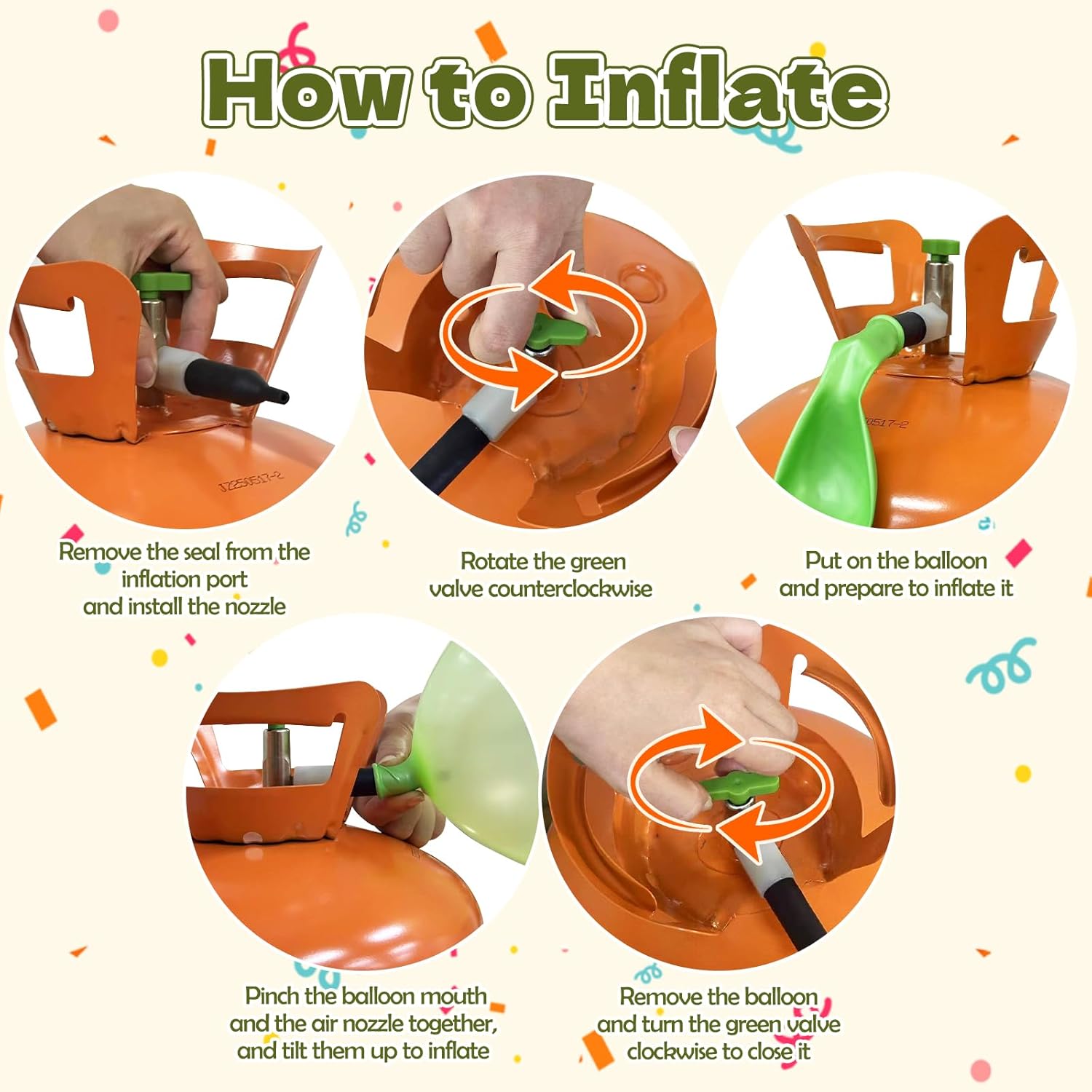 - Helium Tank:1 Tank,99.99% Pure Helium (Non-flammable, Non-toxic - Safe for Indoor Use)ļ¼12.96cu.ft of helium per tank can fill 50 Standard 9-inch Latex Balloons** (Balloons provided are 12-inch size - inflate to 9" for best results).